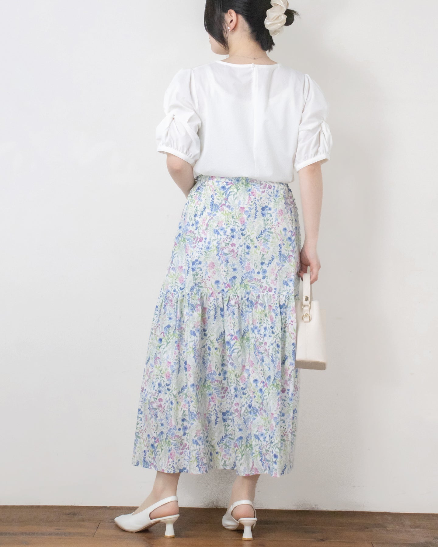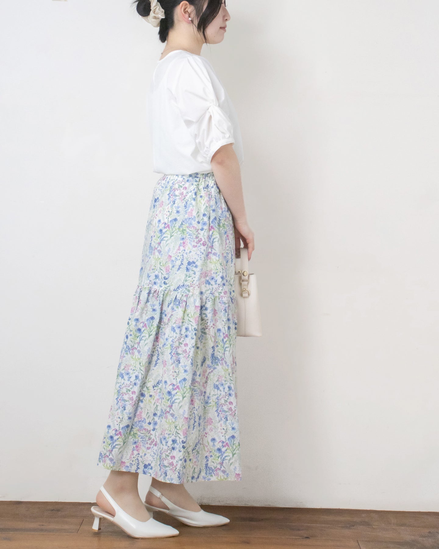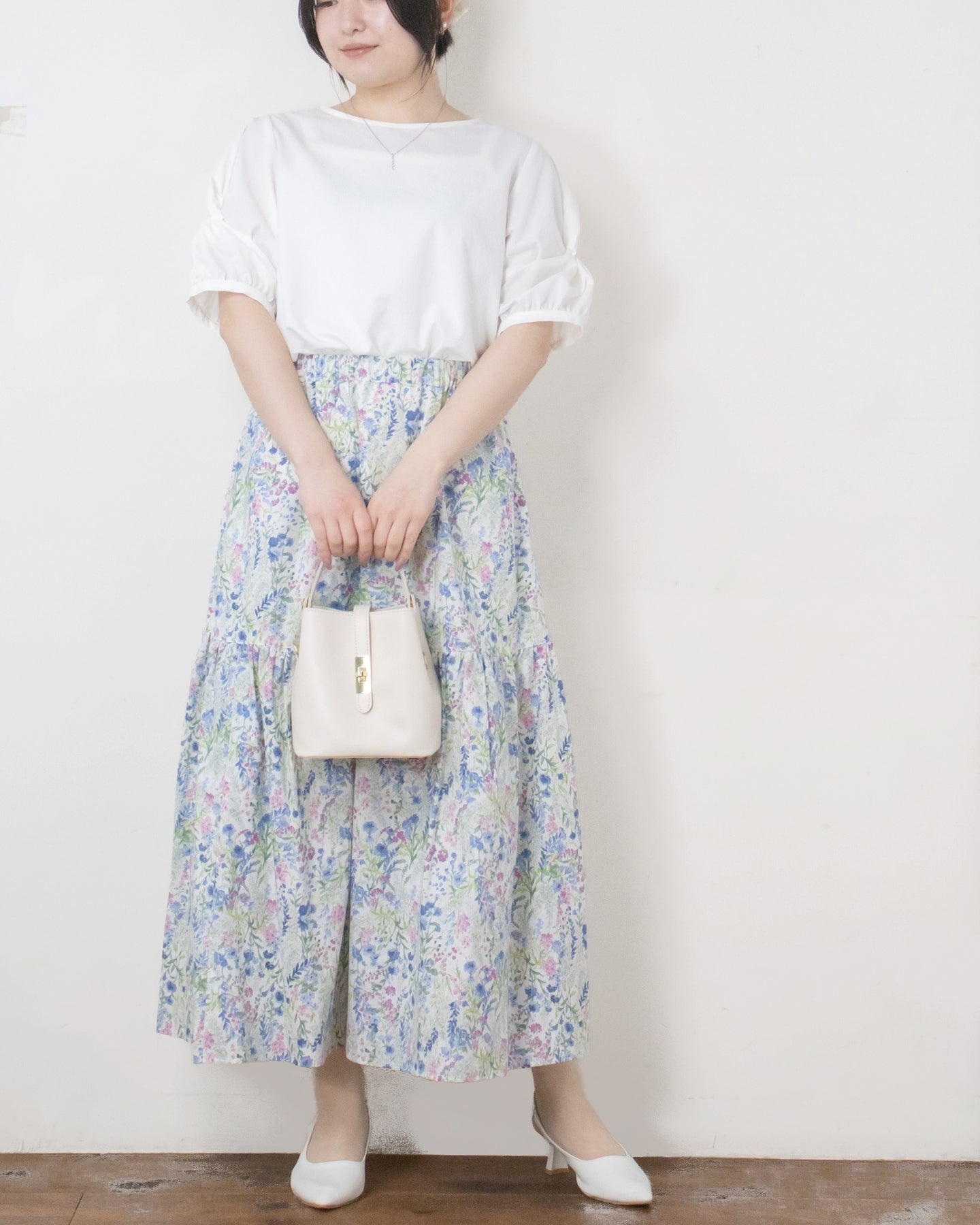 ■コーディネート ・ストレッチツイルマリンパンツ ・綿花柄ティアードスカート