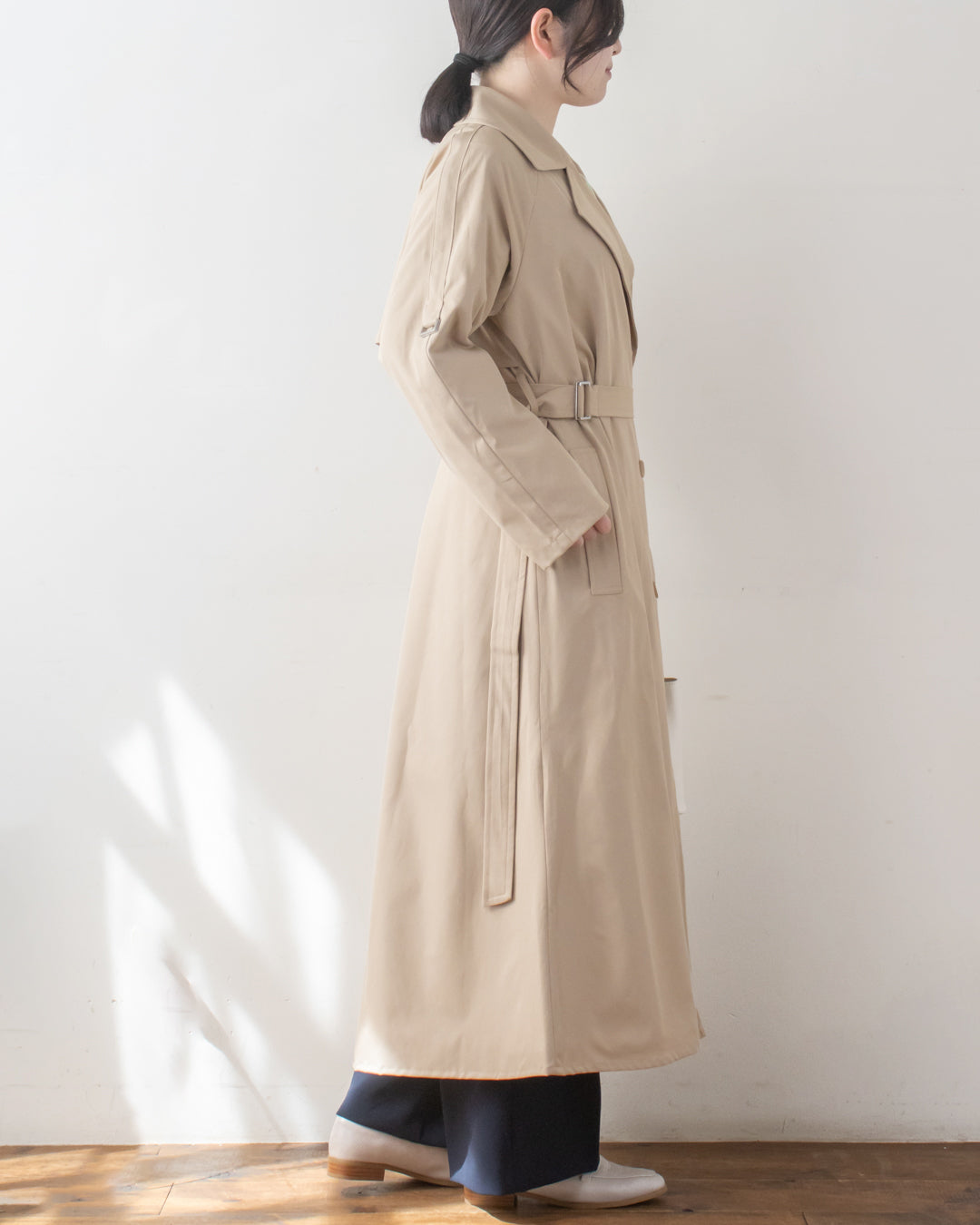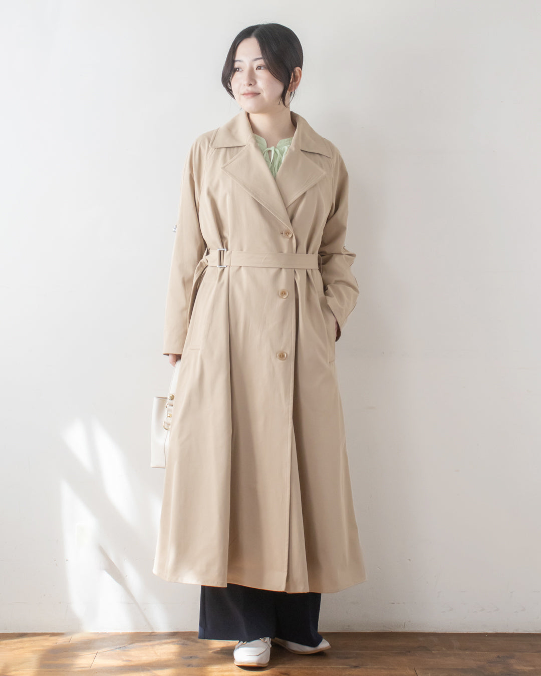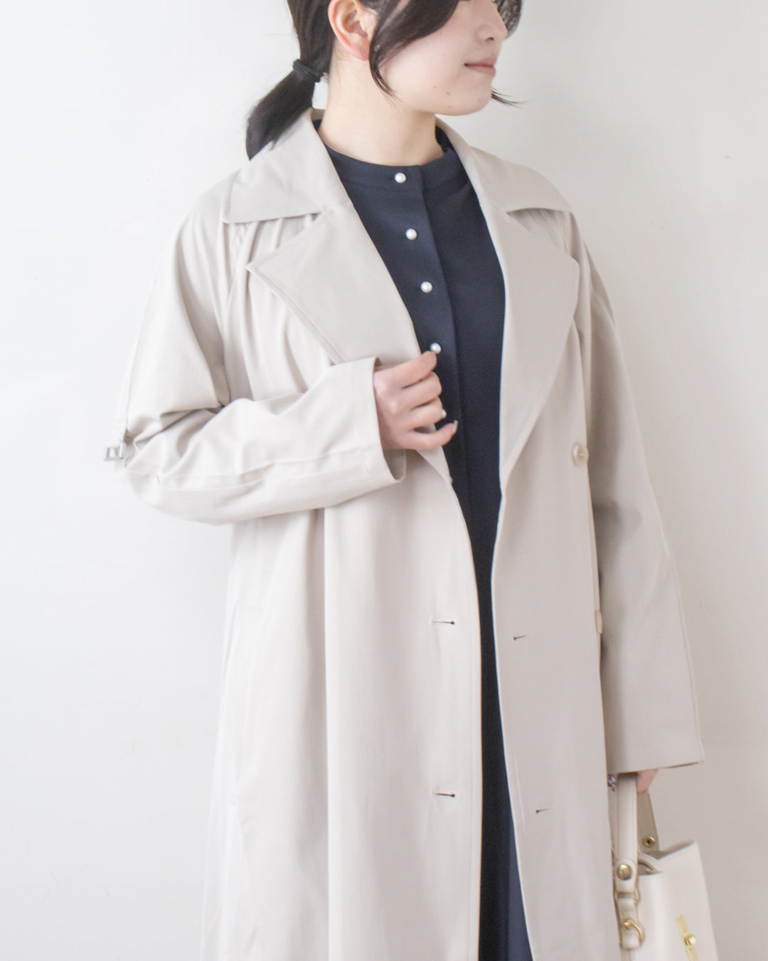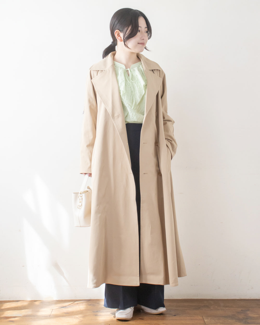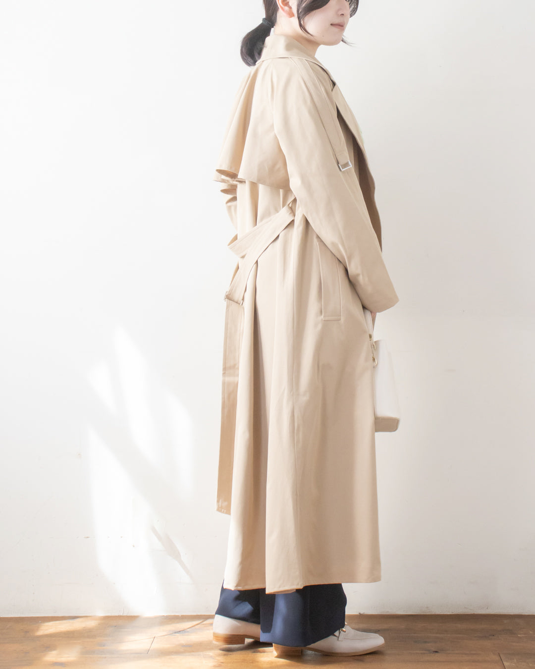 ツイル素材の落ち感と、スッキリとしたきれいめシルエットで、上品な印象に。