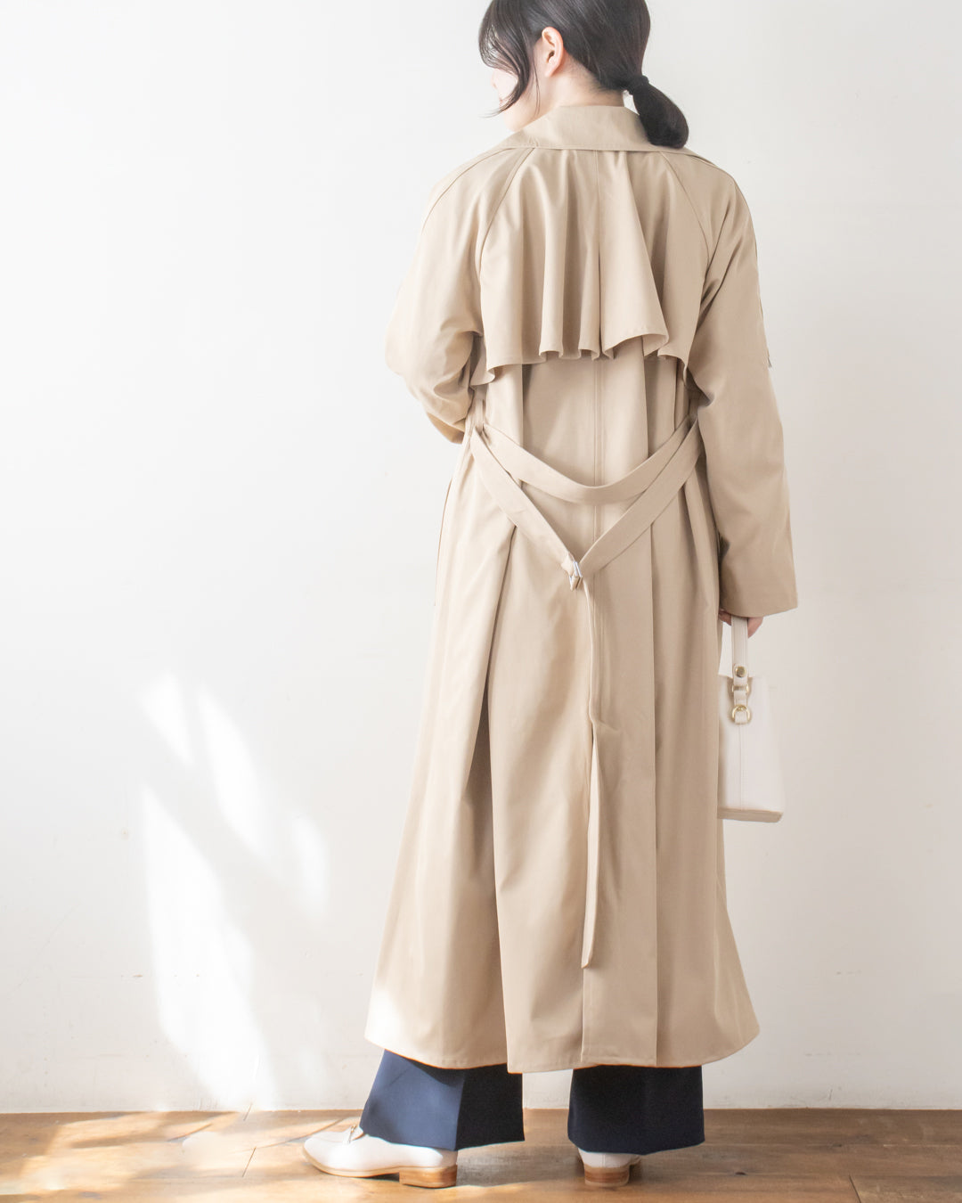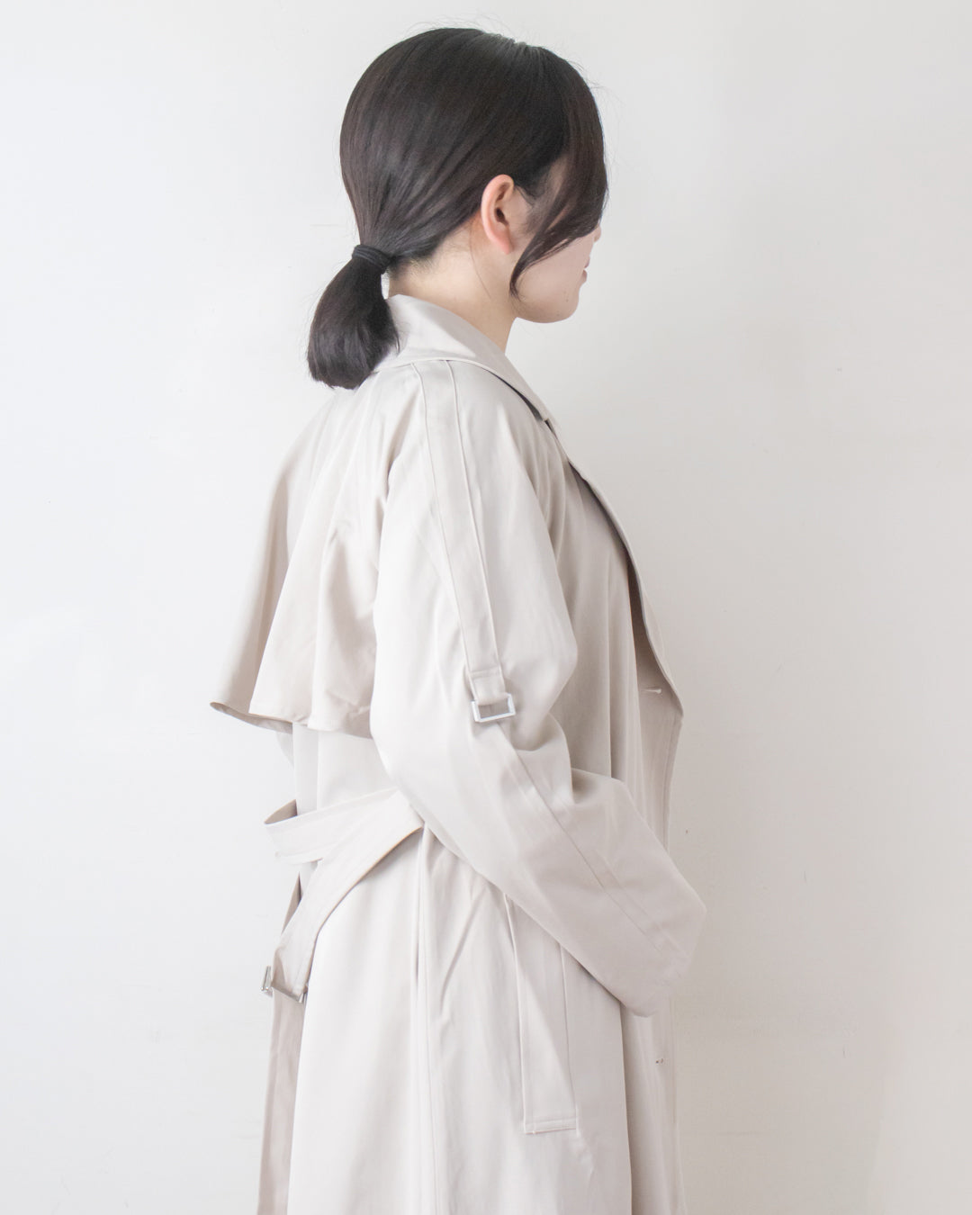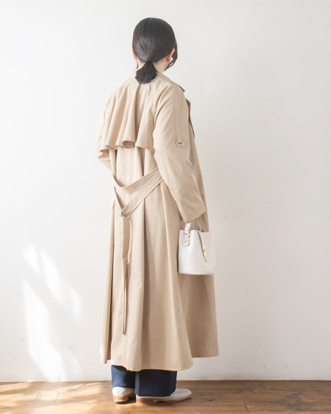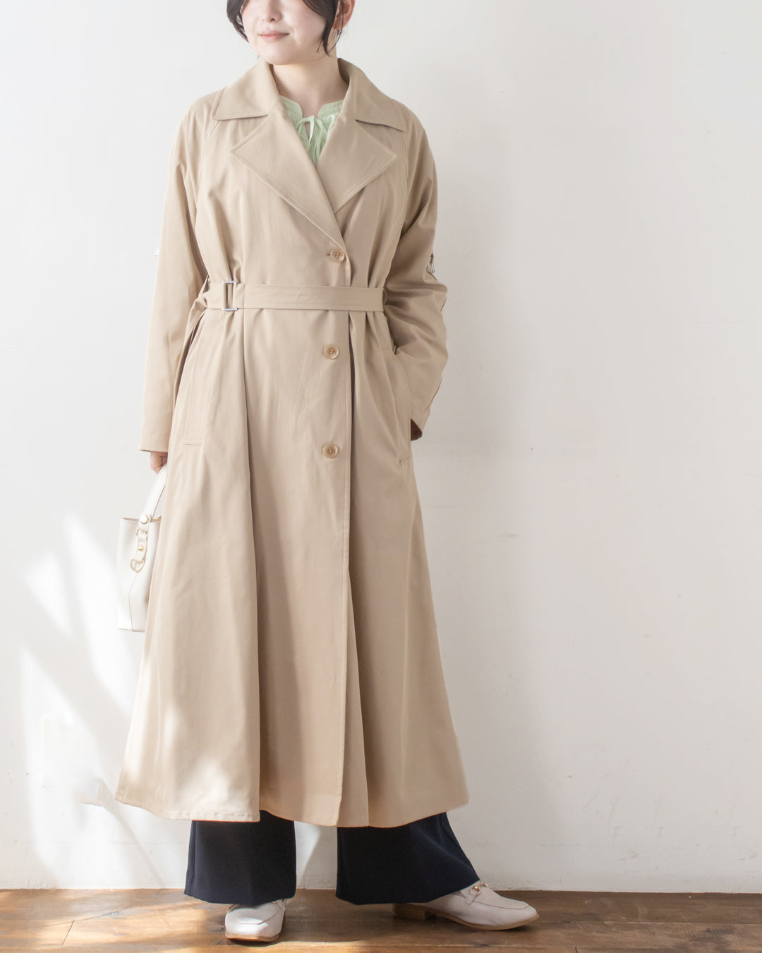 ツイル素材の落ち感と、スッキリとしたきれいめシルエットで、上品な印象に。