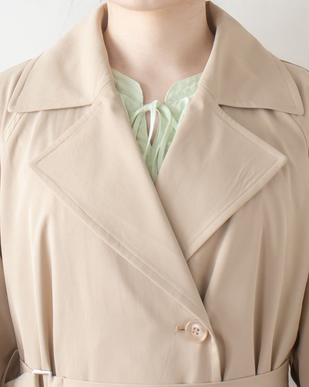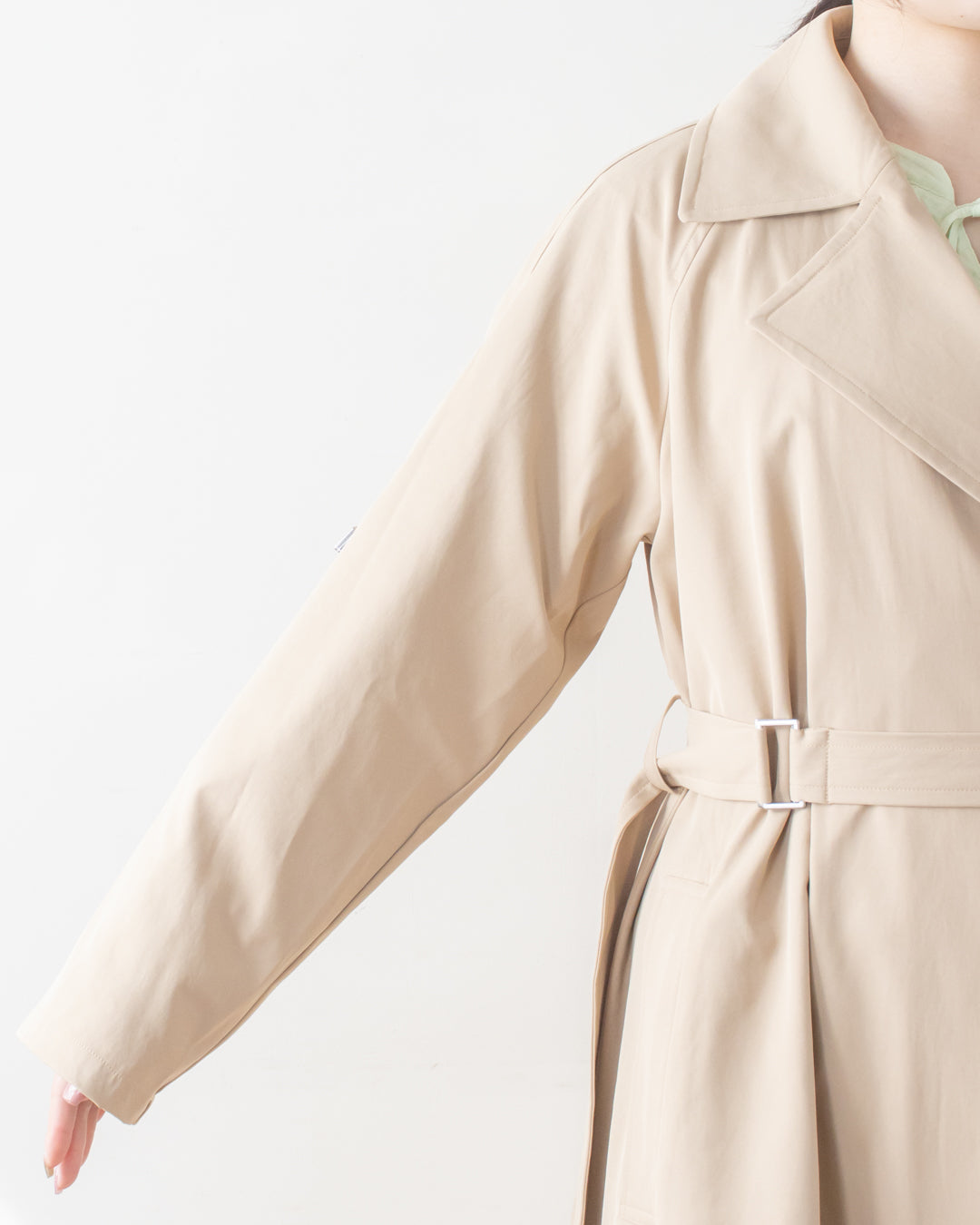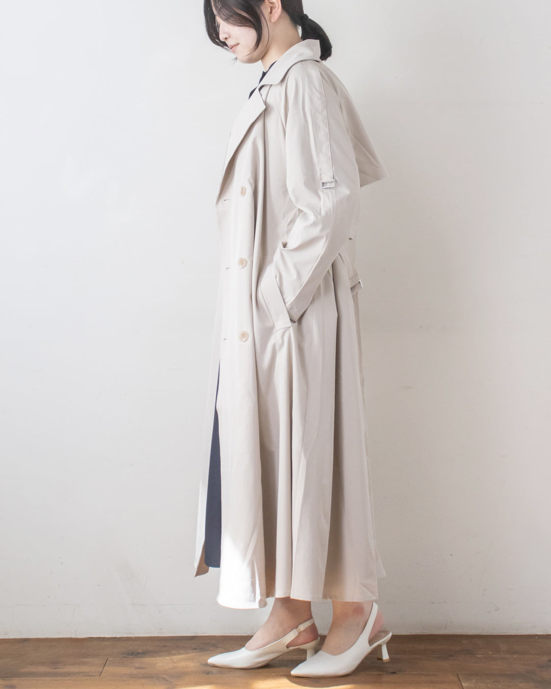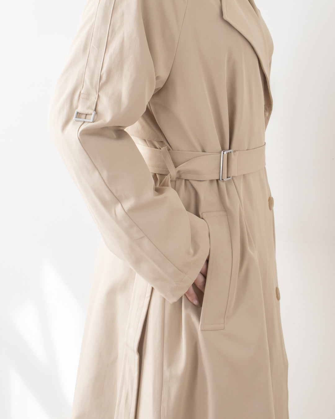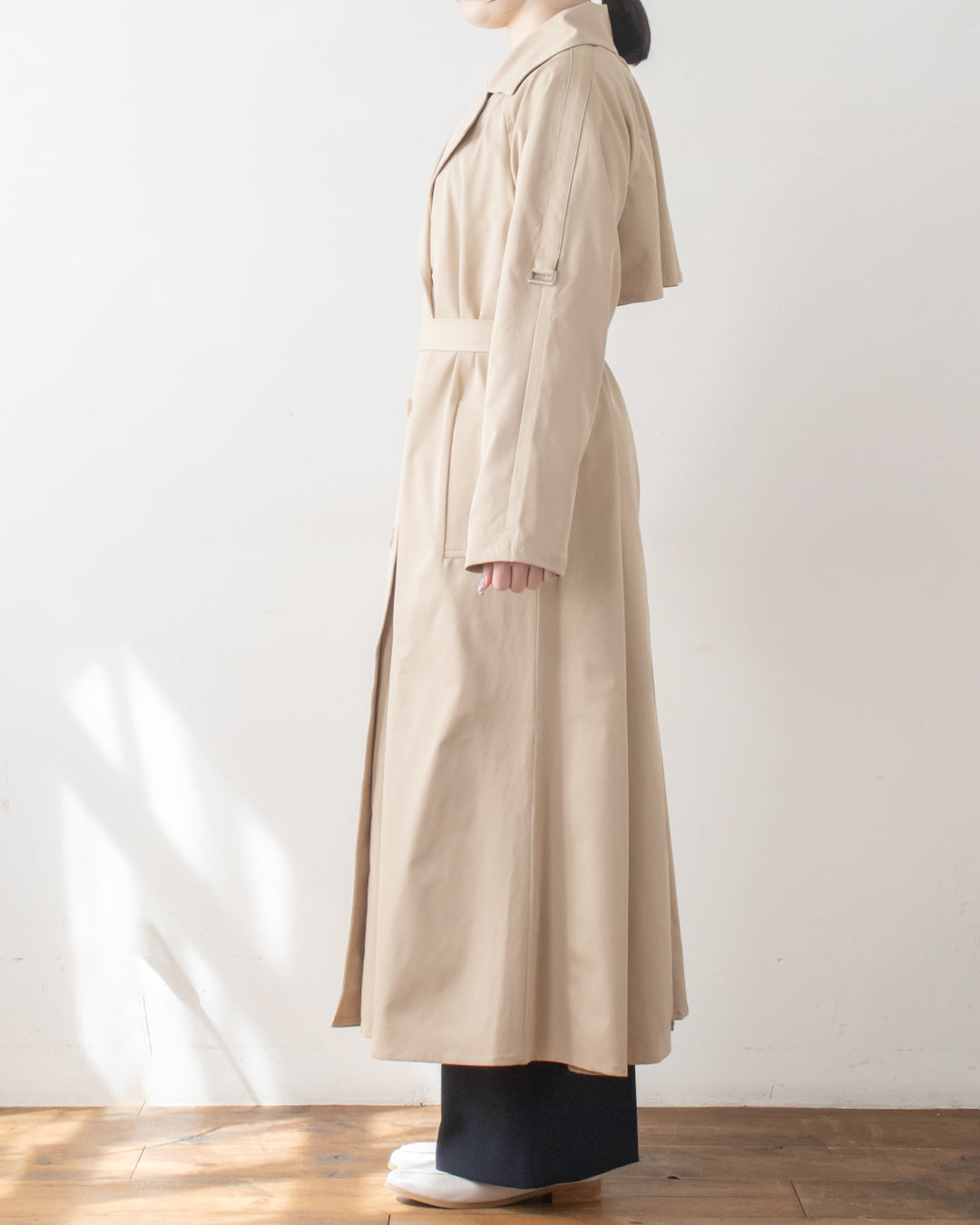 ツイル素材の落ち感と、スッキリとしたきれいめシルエットで、上品な印象に。