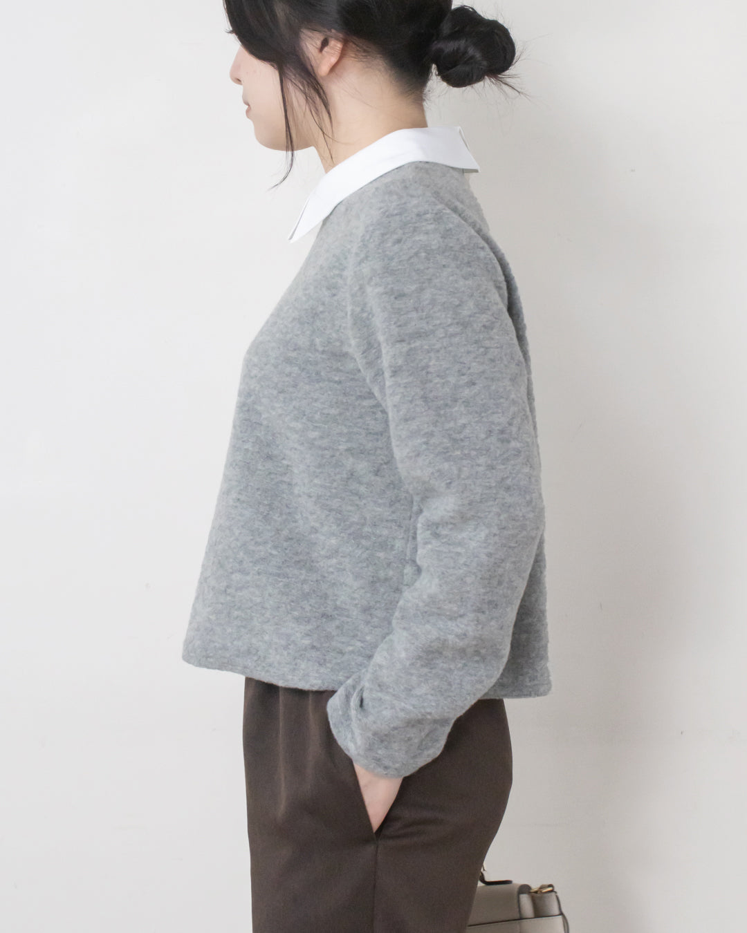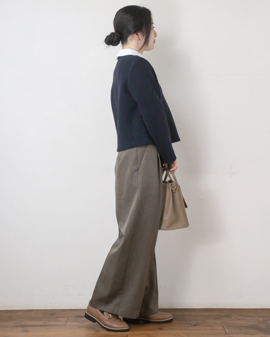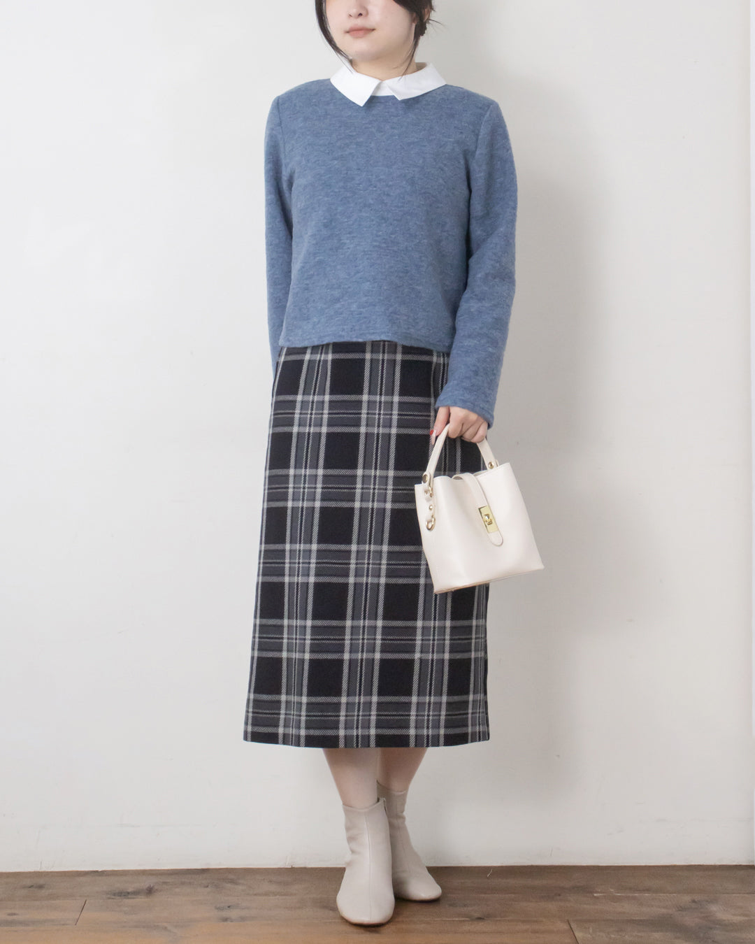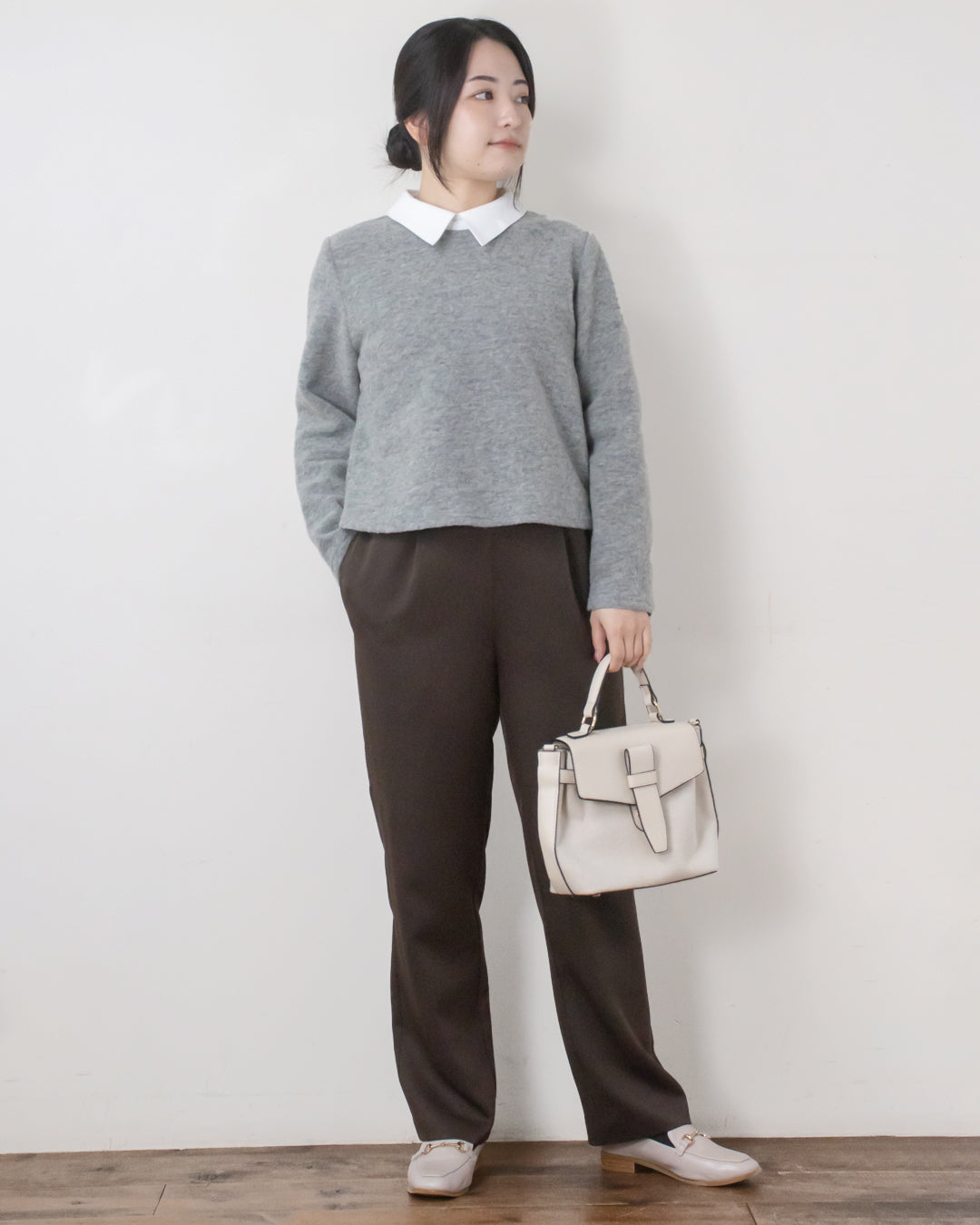 ■デザイン シャツ衿を重ね着したようなレイヤードデザインが魅力のトップスです。 ウール混素材を使用しており、暖かく季節感のある着こなしに。 白衿のバイカラーデザインが顔周りを明るく見せ、メリハリをプラスします。 短め丈で裾を出して着てもバランス良く、お仕事シーンにもおすすめです。 後ろファスナー開きで着脱しやすく、家庭洗濯可能なのも嬉しいポイントです。