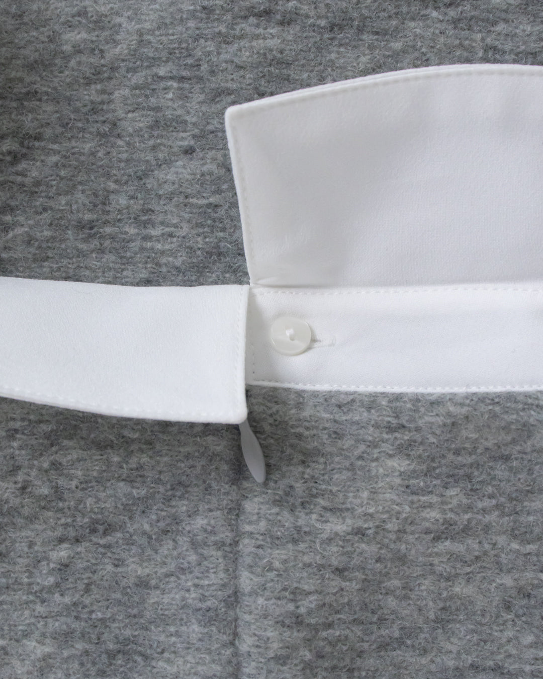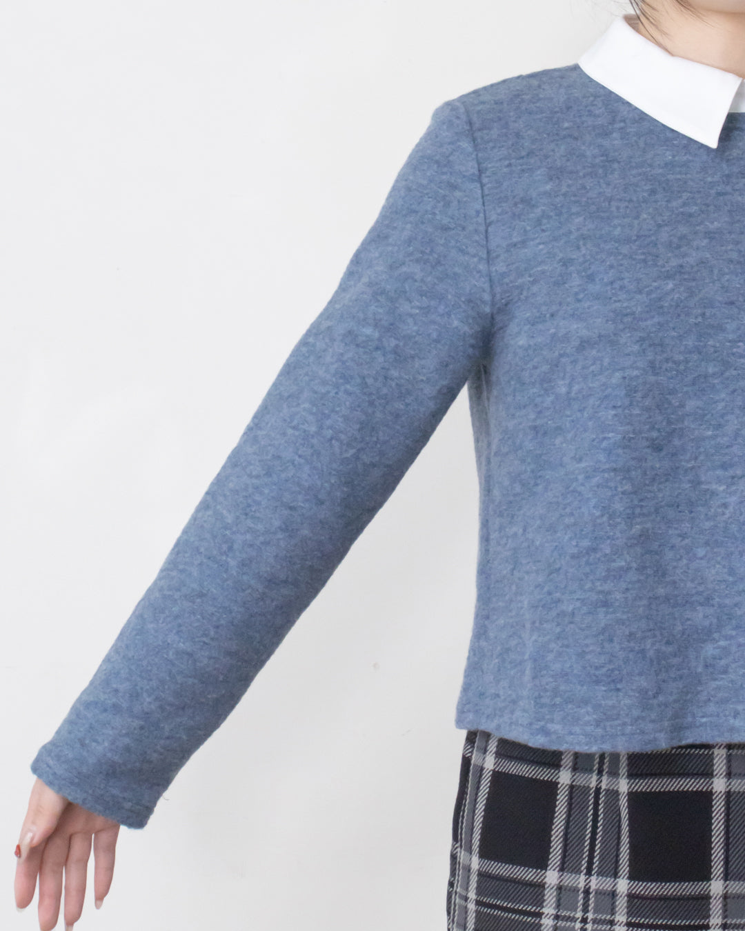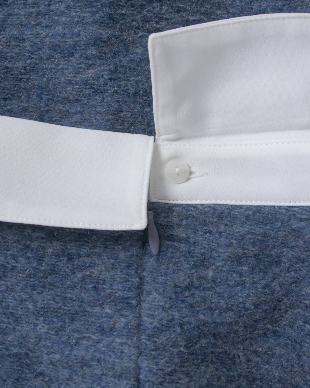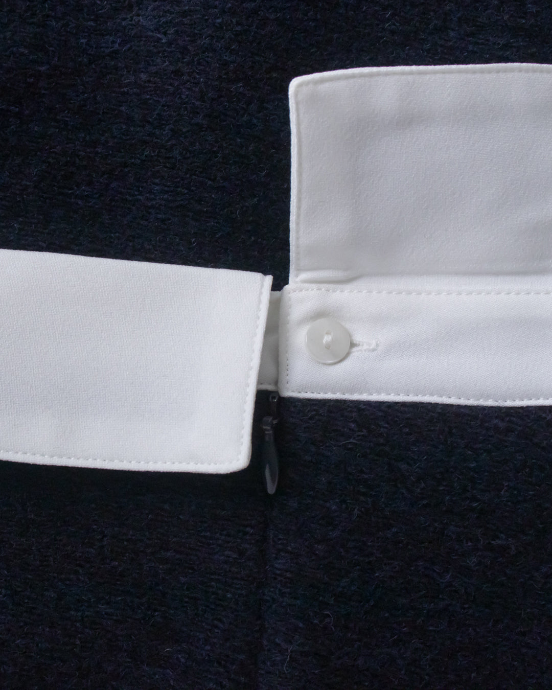 ■デザイン シャツ衿を重ね着したようなレイヤードデザインが魅力のトップスです。 ウール混素材を使用しており、暖かく季節感のある着こなしに。 白衿のバイカラーデザインが顔周りを明るく見せ、メリハリをプラスします。 短め丈で裾を出して着てもバランス良く、お仕事シーンにもおすすめです。 後ろファスナー開きで着脱しやすく、家庭洗濯可能なのも嬉しいポイントです。