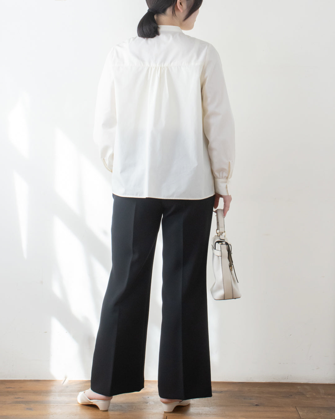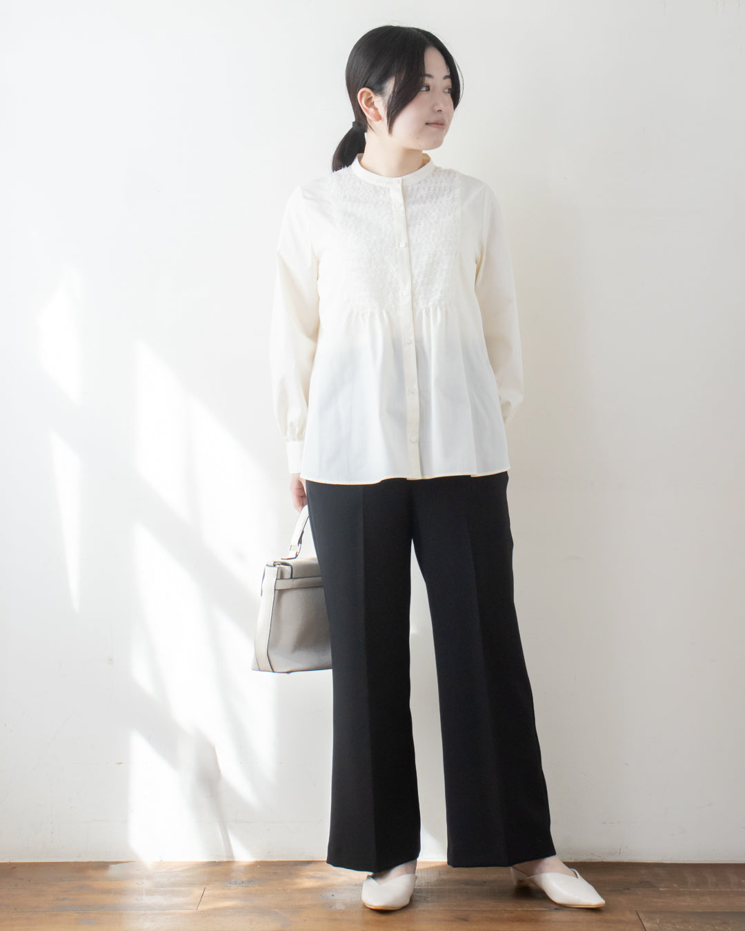 ■コーディネート ・コットンライクBIGカラーブラウス ・ジオメカットジャカード切替ブラウス ・Vネックプルオーバー