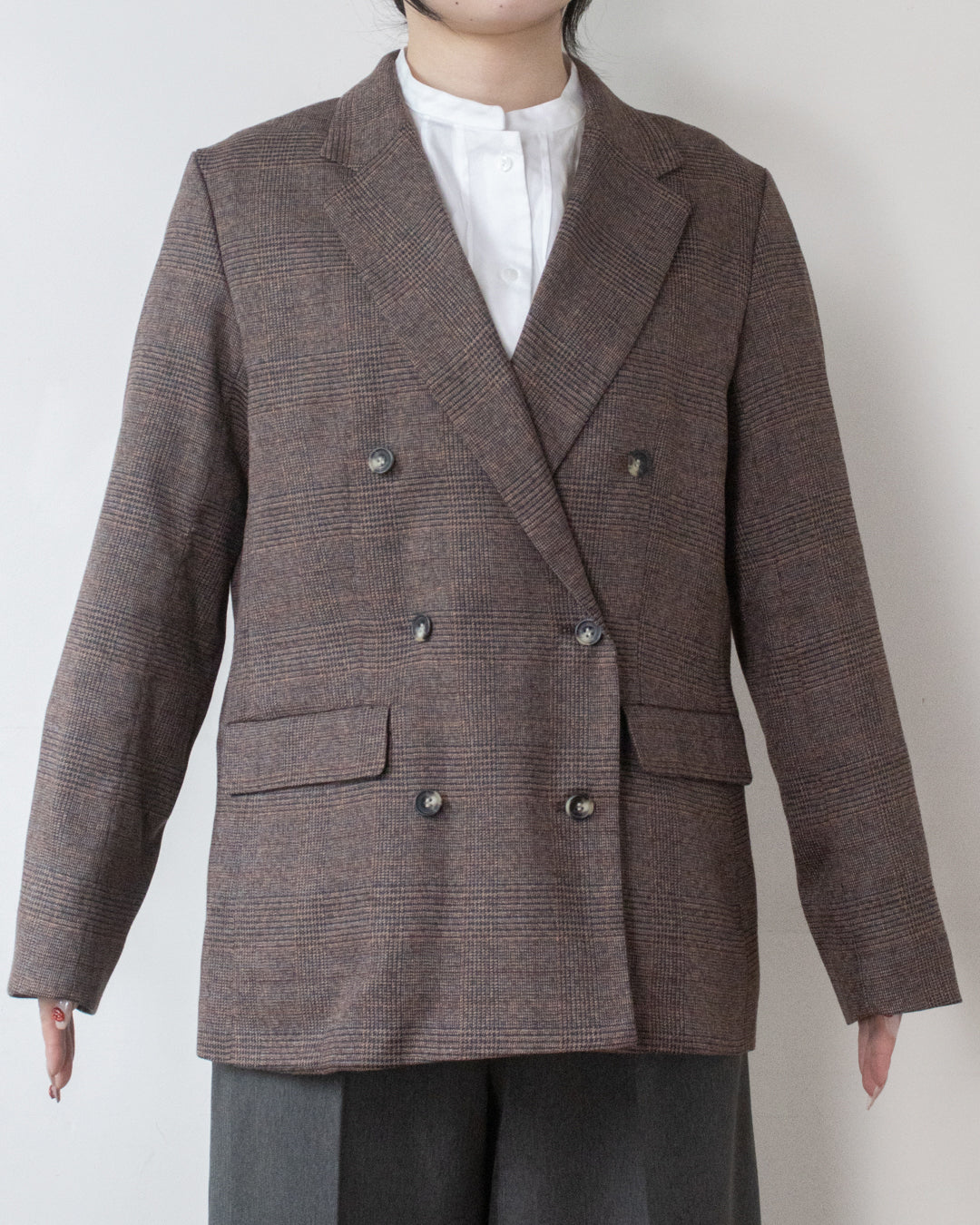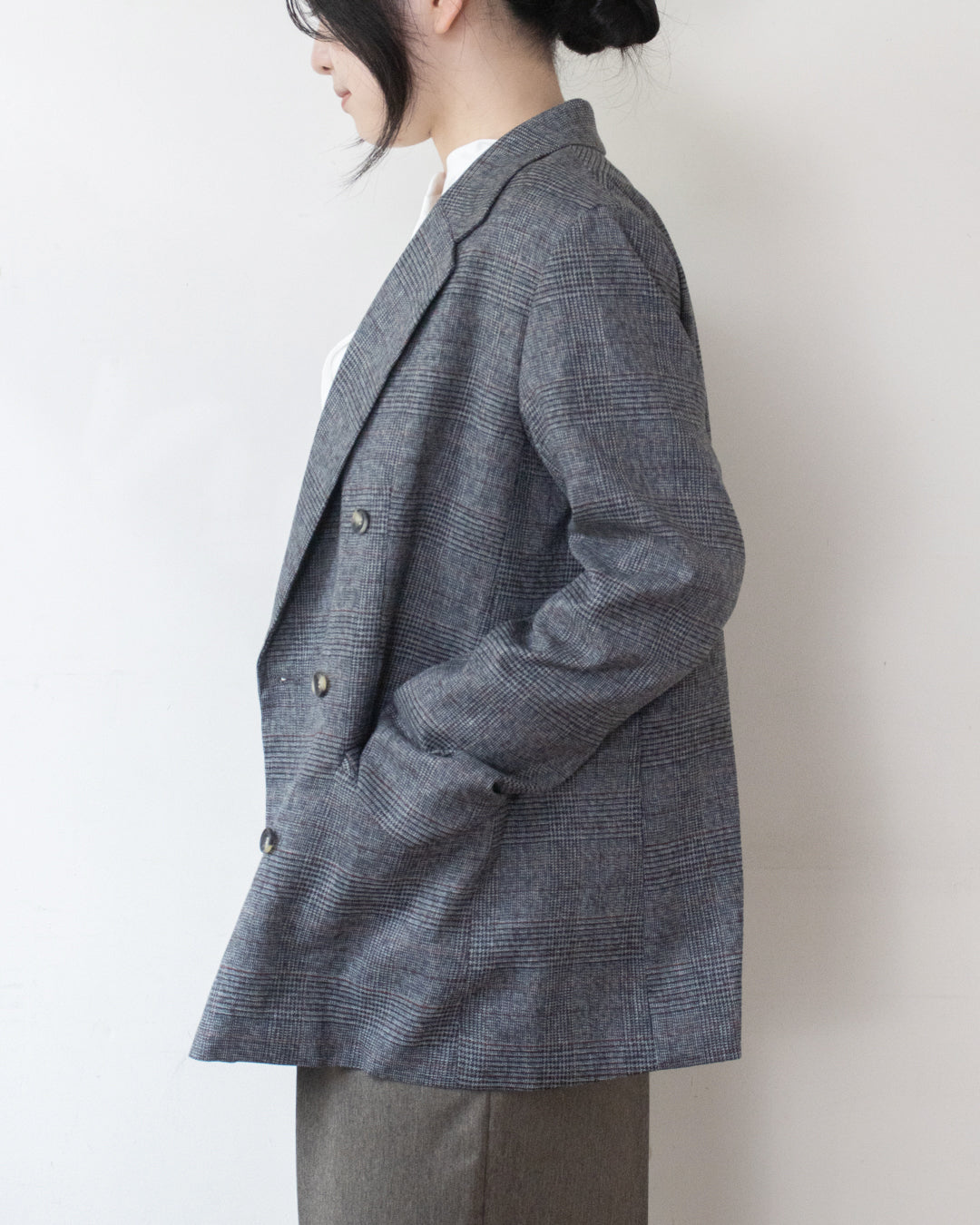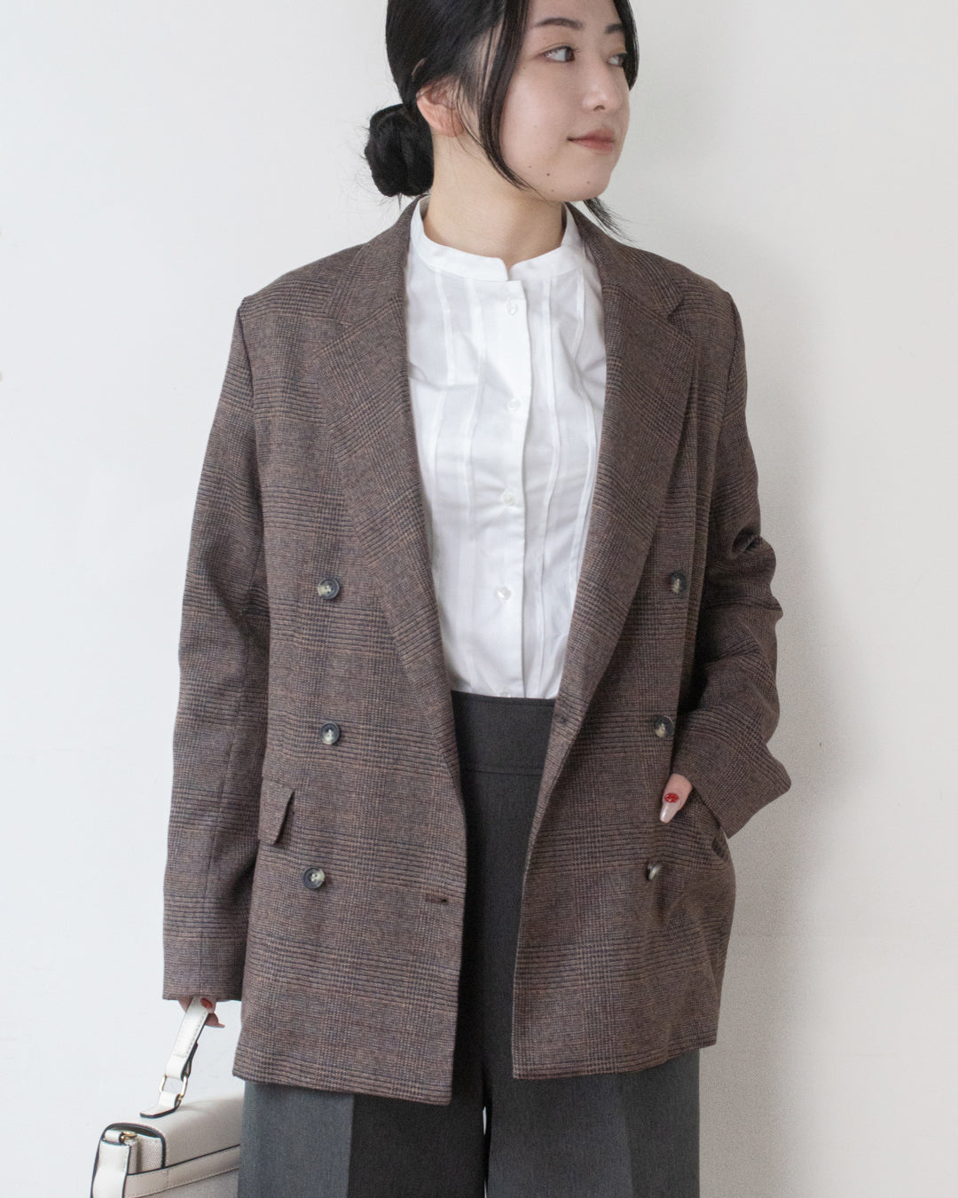 マニッシュなダブルボタン仕様のテーラードジャケット。