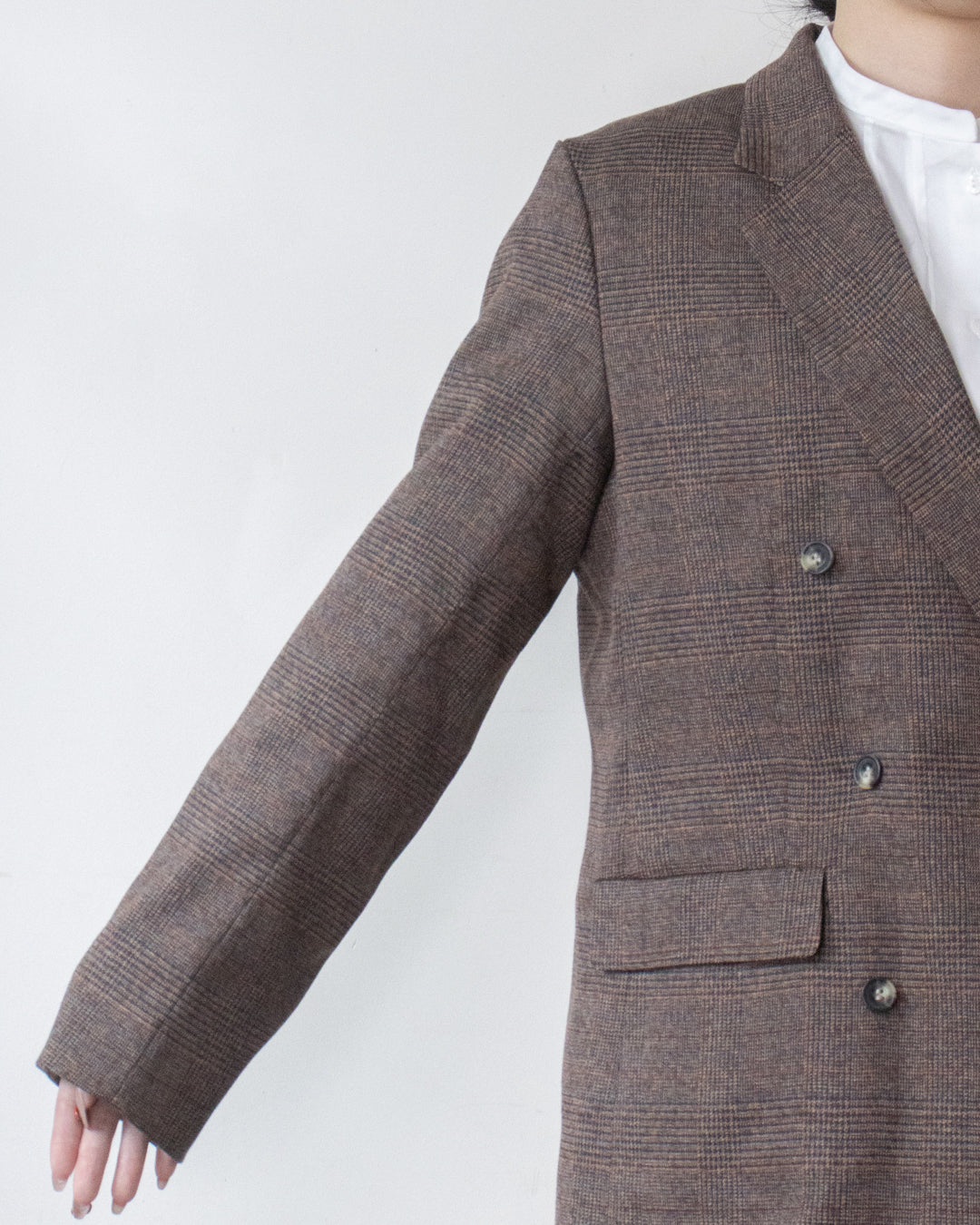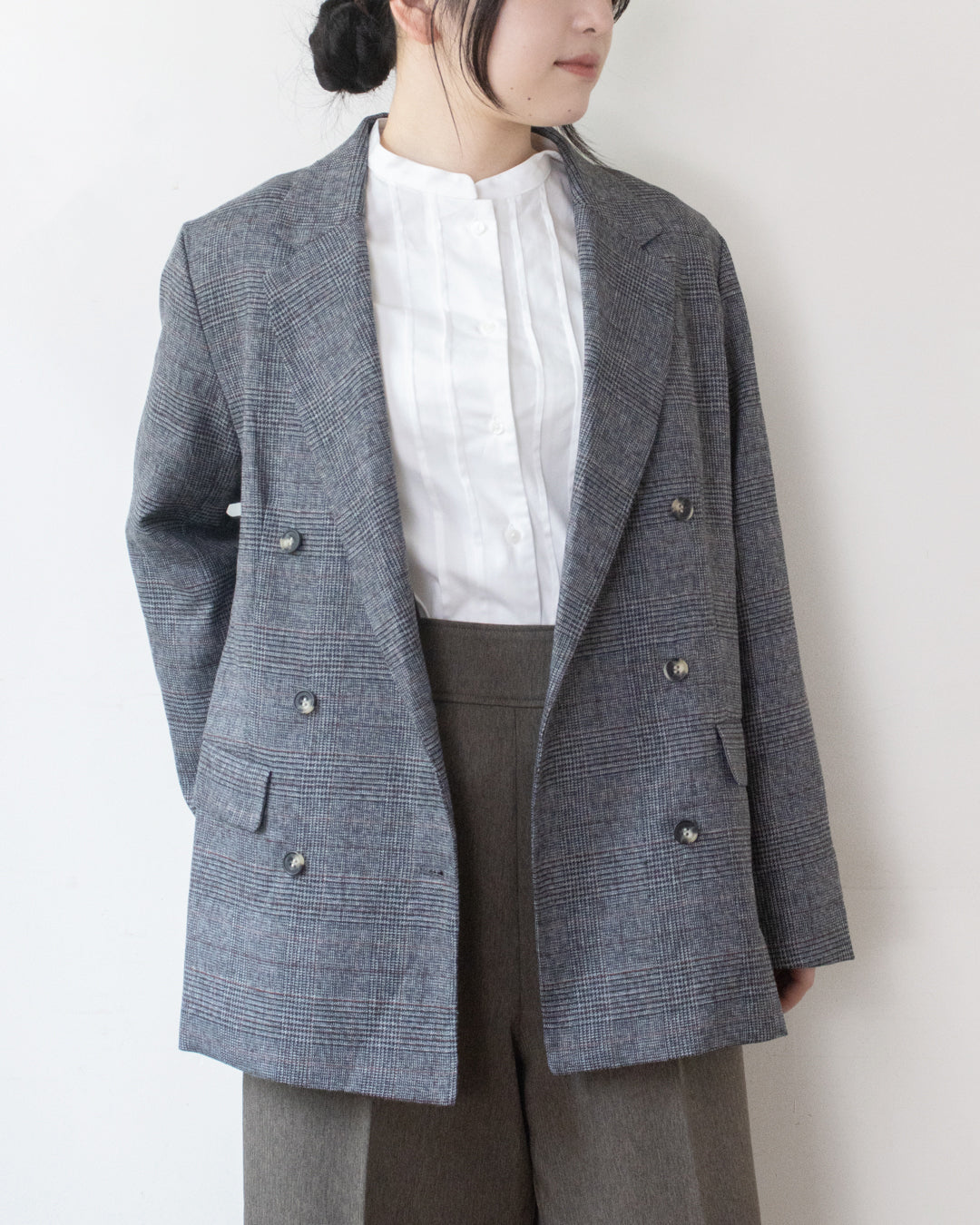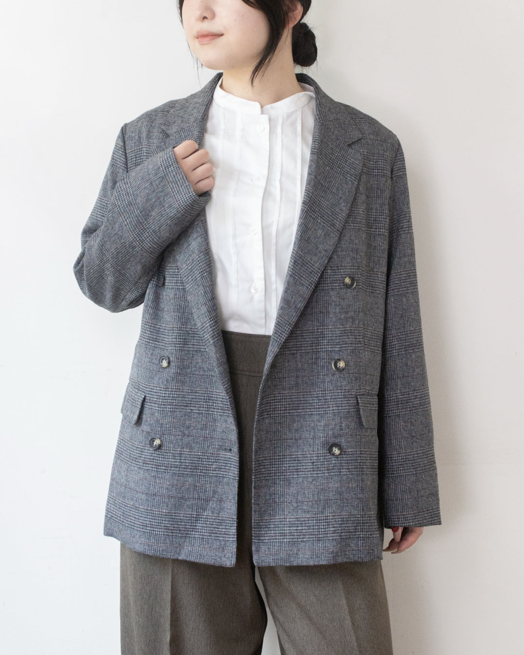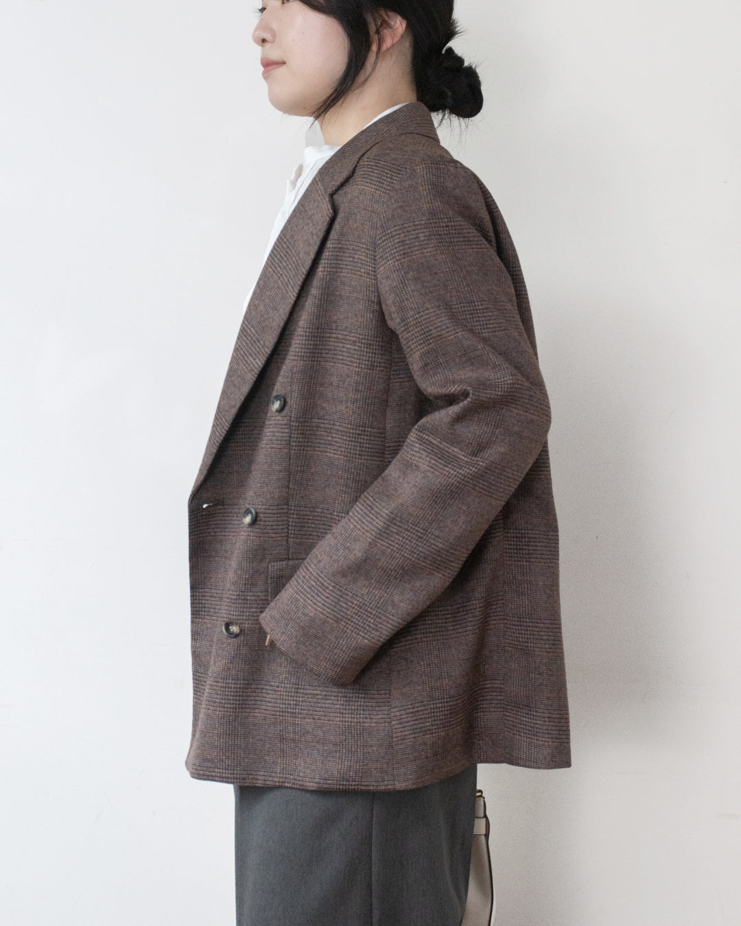 マニッシュなダブルボタン仕様のテーラードジャケット。