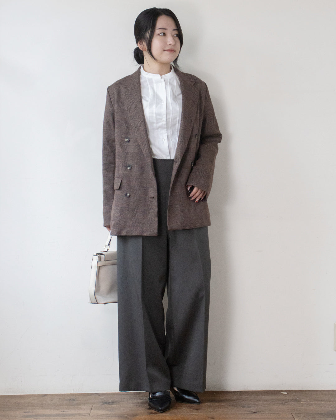 奥行きのあるグレンチェック柄がコーディネートをクラシカルにまとめます。
