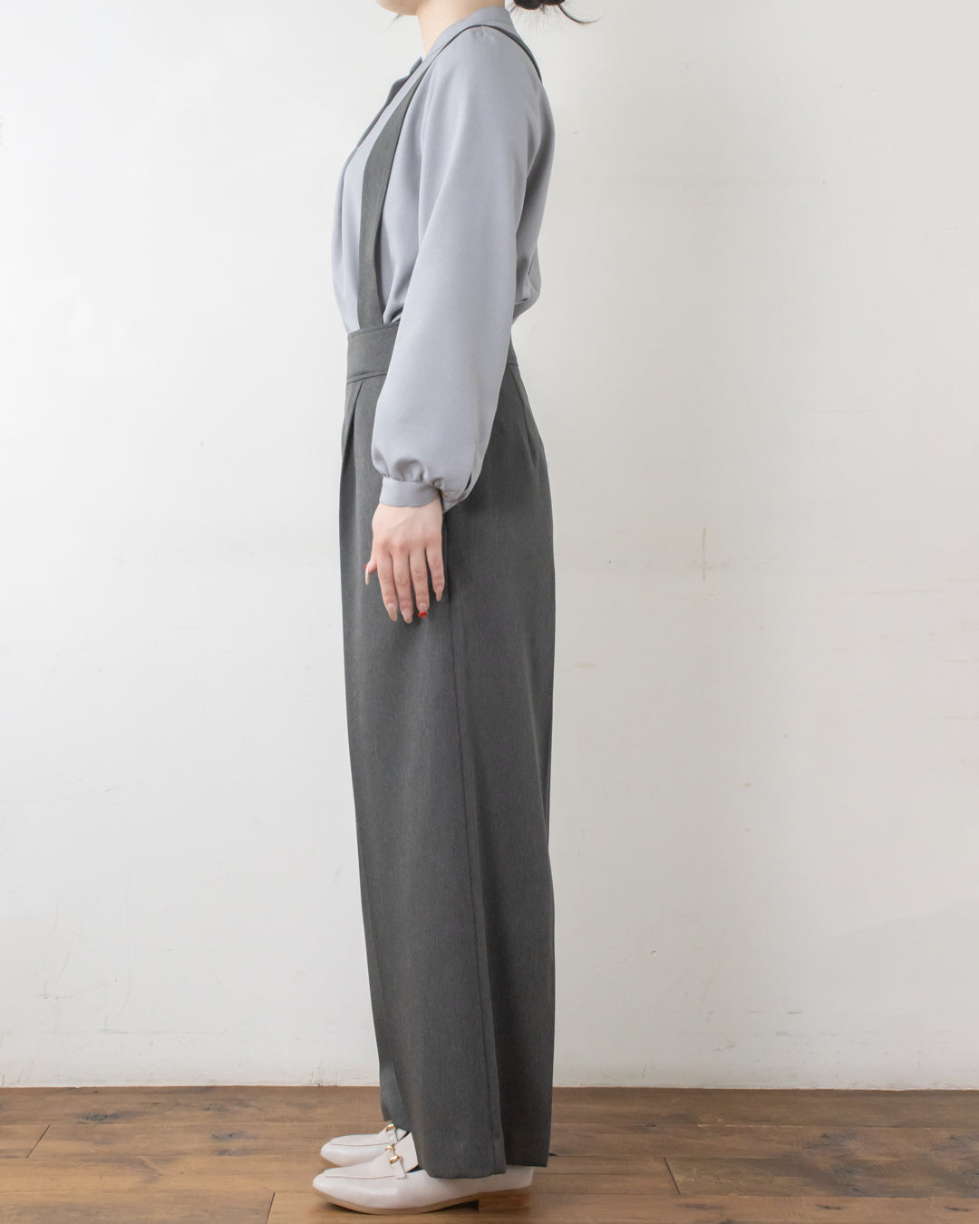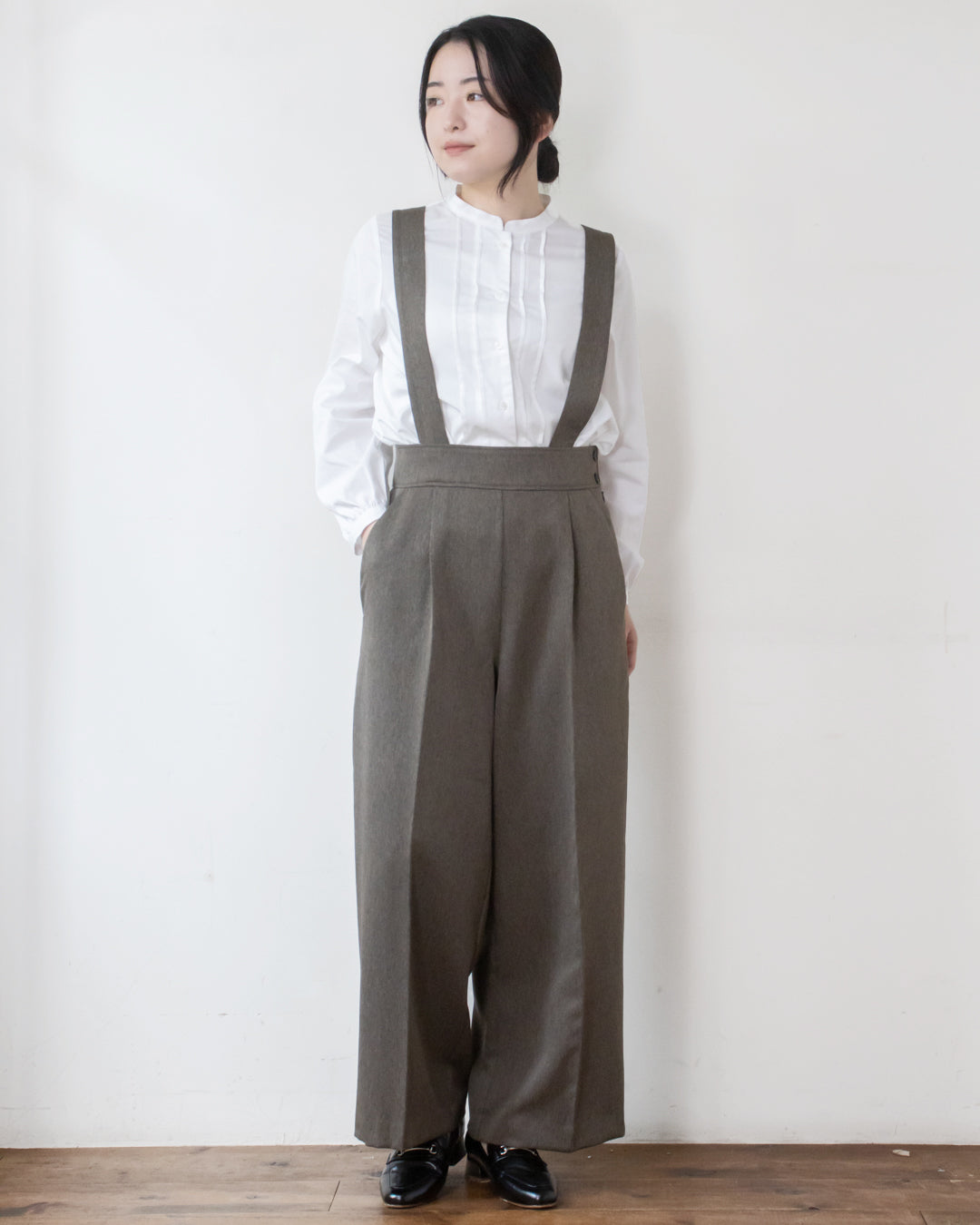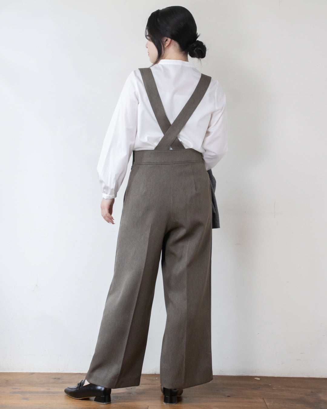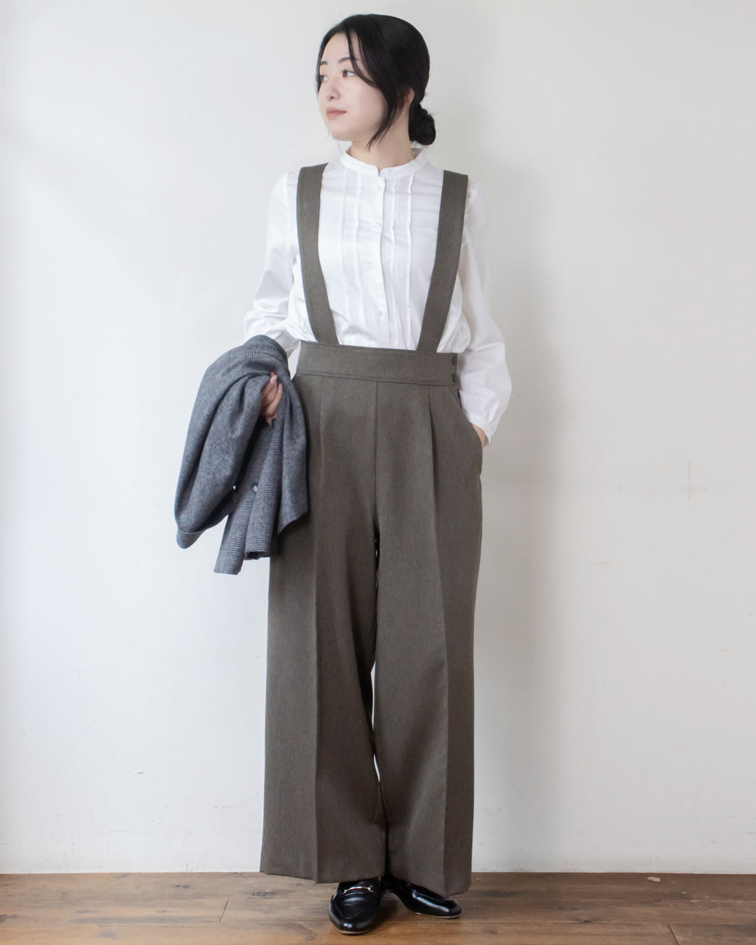 ■デザイン 小さめのへリンボン柄が大人可愛い吊りパンツ。 吊り紐はボタンホール付きで長さ調節が出来、さらに取り外し可能なのでパンツ単体としても着用いただけます。 太めのウエストベルトとセンタープレスがスタイルをきれいに見せてくれるのも嬉しいポイント。 サイドのボタンがさりげないアクセントになり、シンプルながらもおしゃれ感をプラス。 ポリエステル素材なのでシワになりにくくお手入れしやすいのも魅力です。