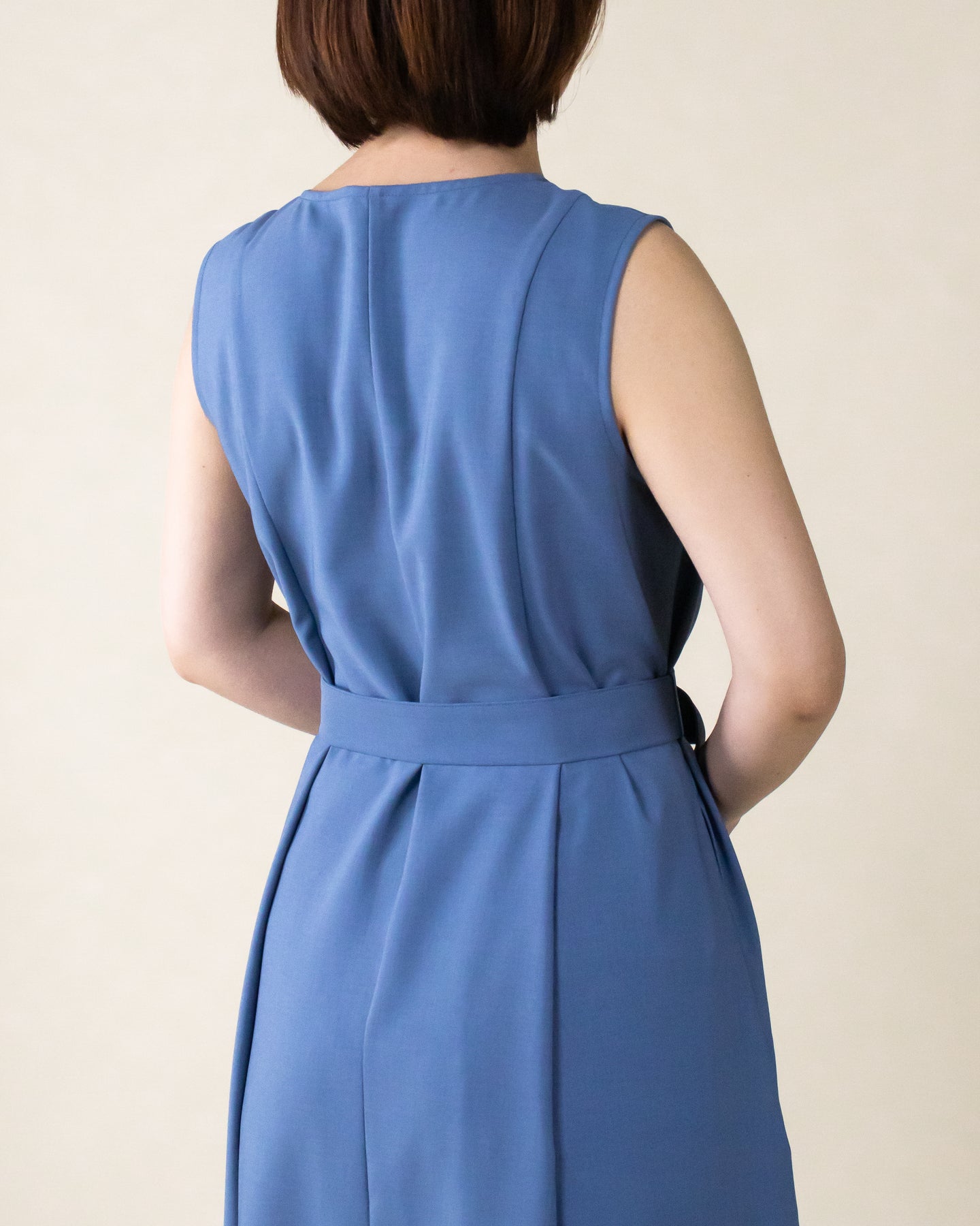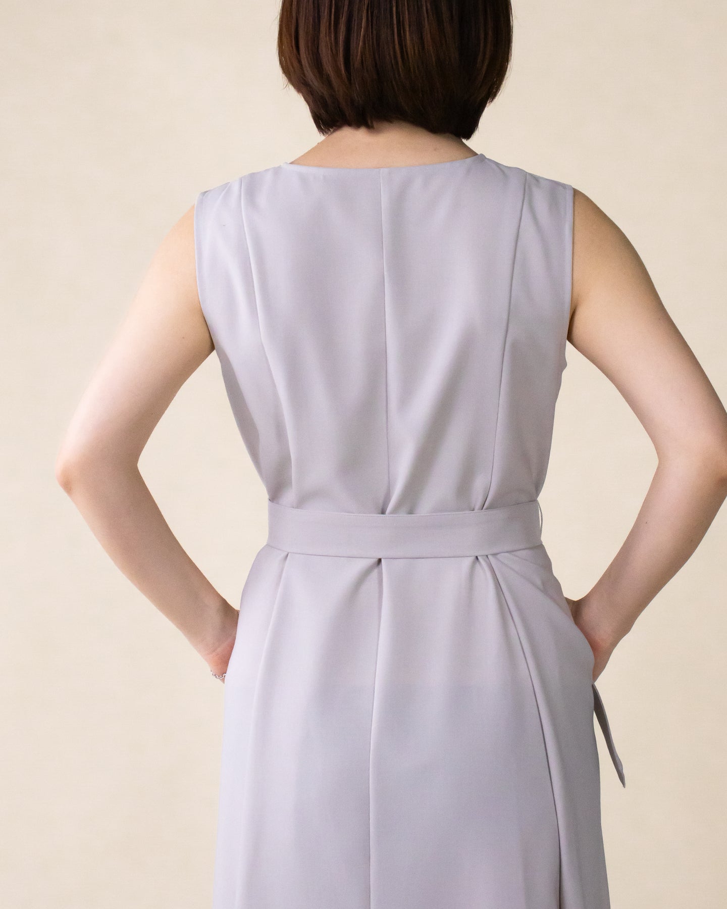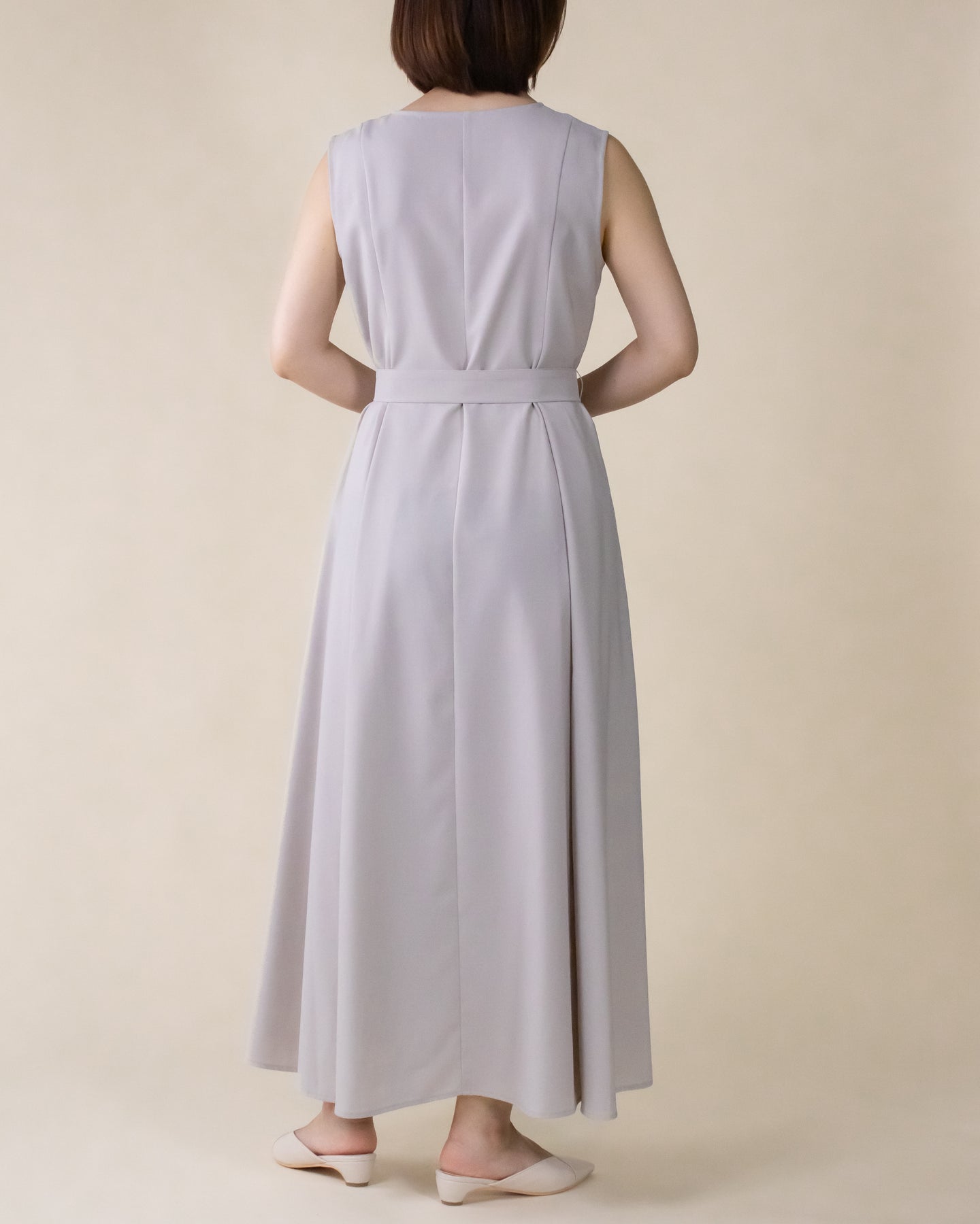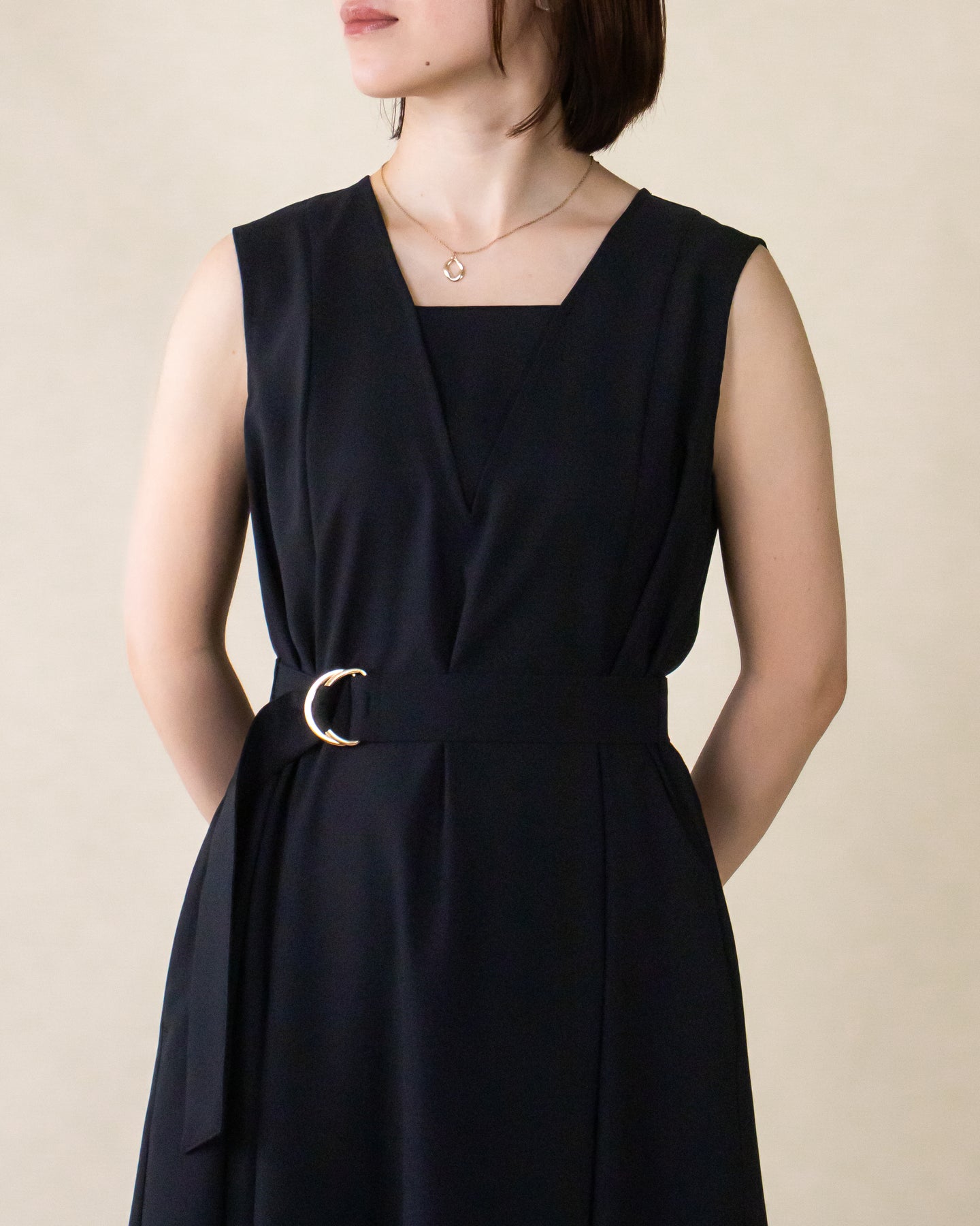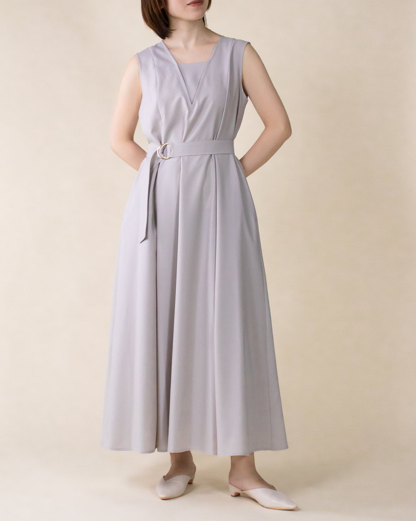 ■デザイン 夏のお出かけにぴったりなノースリーブワンピース。 重ね着したかのようなスクエアネックラインがポイントで、デコルテもすっきり綺麗に演出。 裾まで広がるフレアシルエットは優雅な印象◎ さらにベルトでウエストマークした着こなしでスタイルアップ効果も期待できます♪ シワになりにくく、汗も乾きやすい素材を使用。