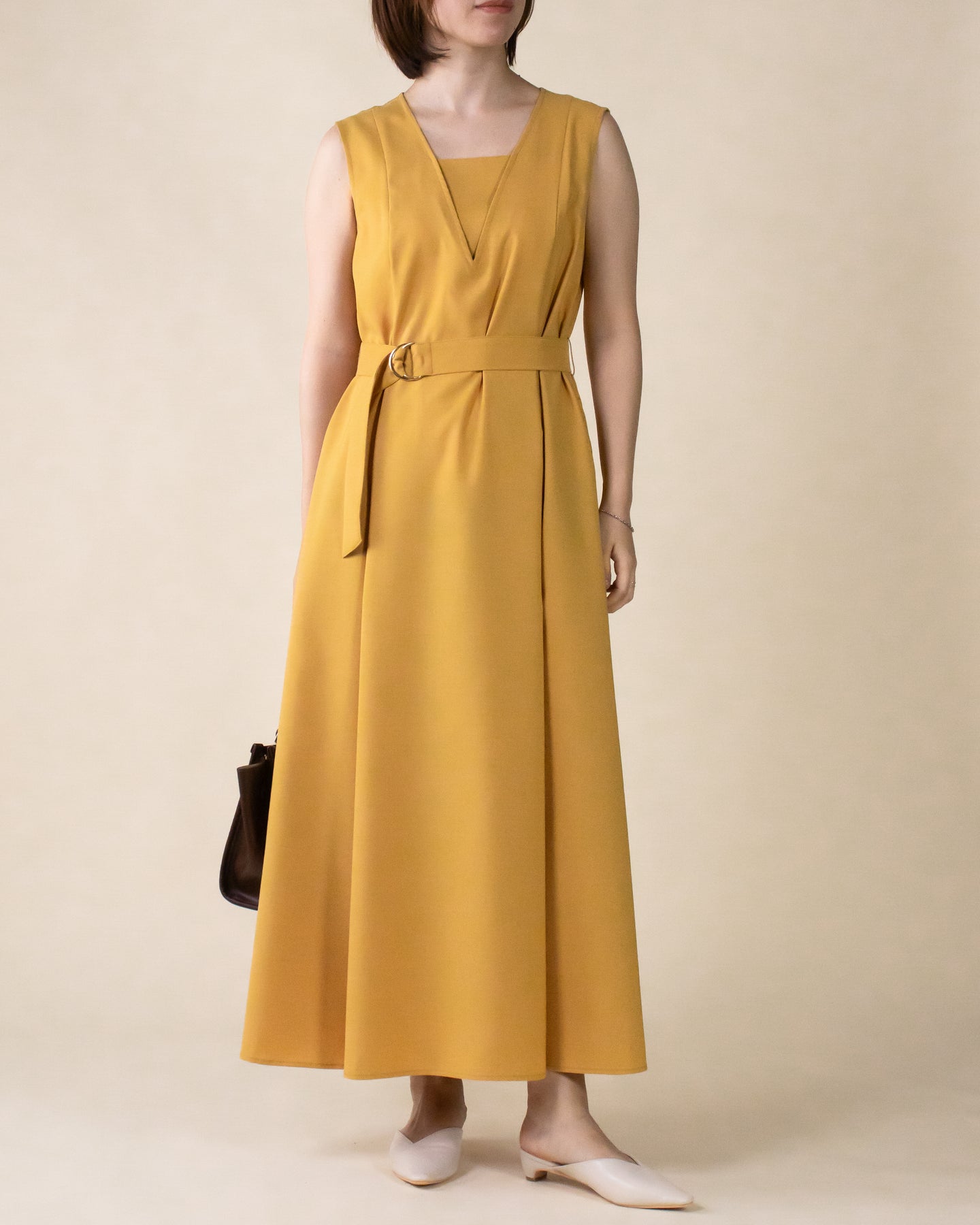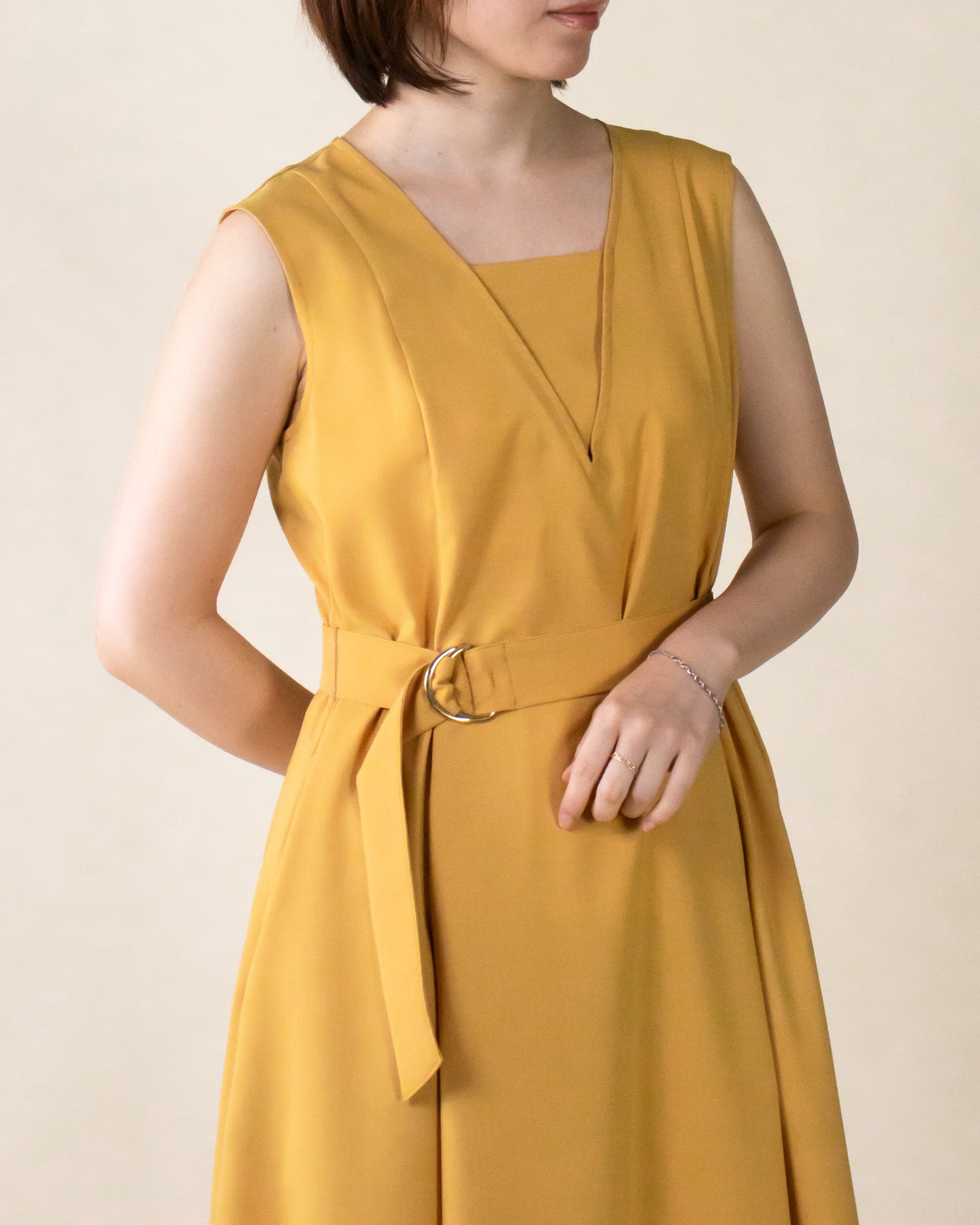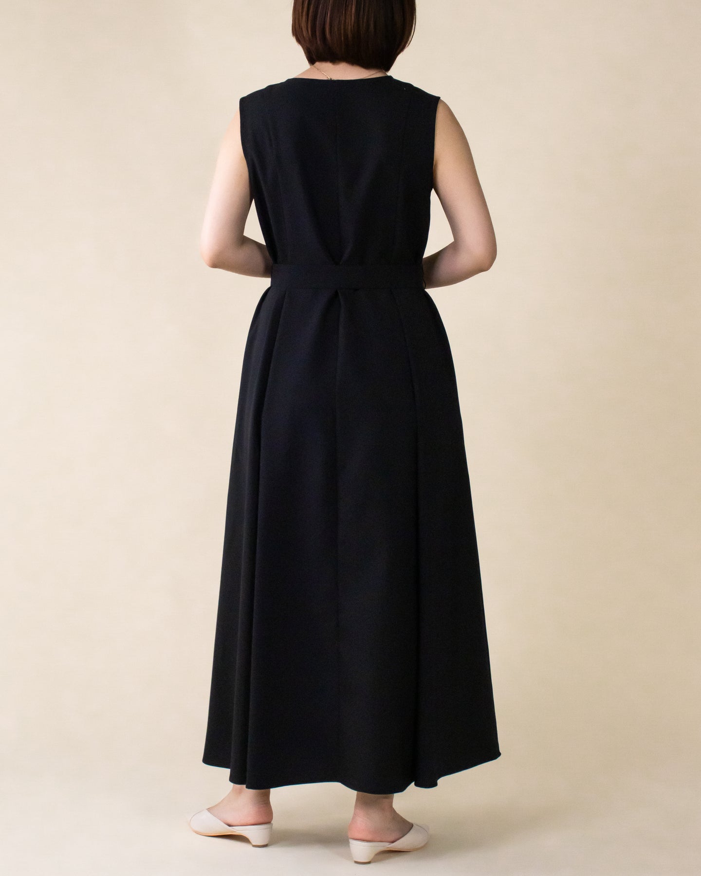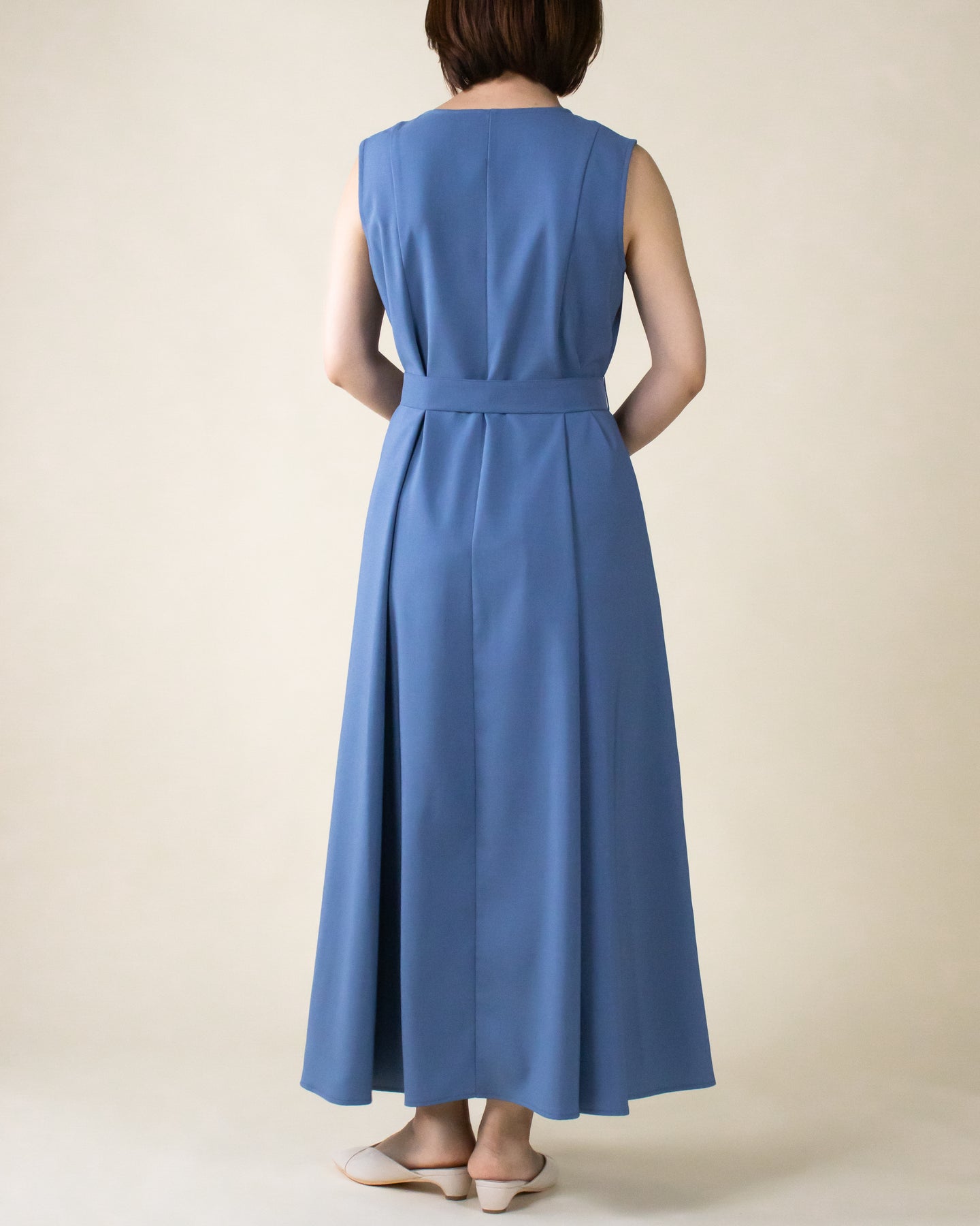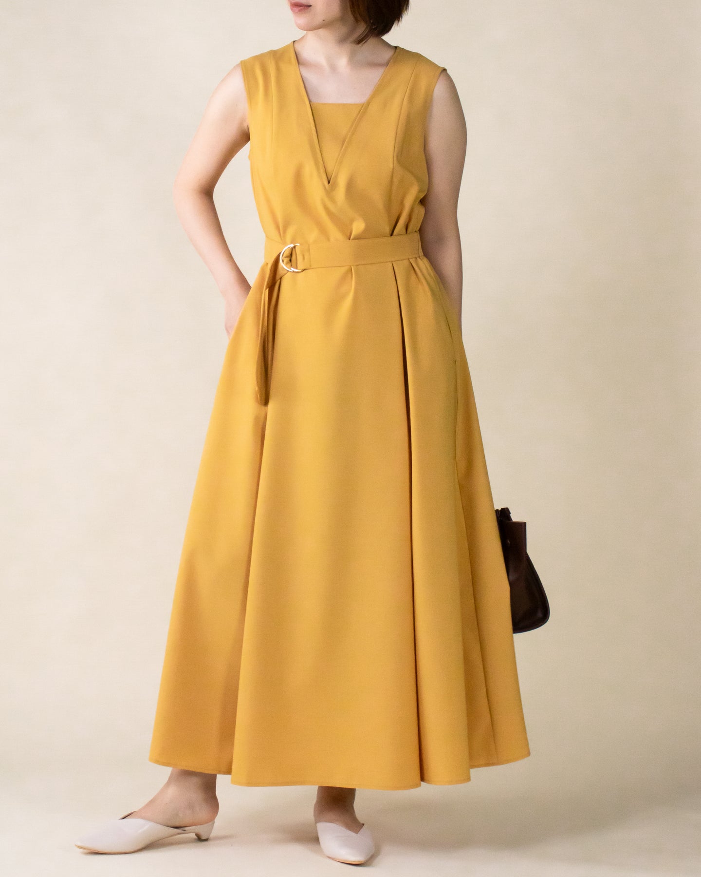 ■デザイン 夏のお出かけにぴったりなノースリーブワンピース。 重ね着したかのようなスクエアネックラインがポイントで、デコルテもすっきり綺麗に演出。 裾まで広がるフレアシルエットは優雅な印象◎ さらにベルトでウエストマークした着こなしでスタイルアップ効果も期待できます♪ シワになりにくく、汗も乾きやすい素材を使用。