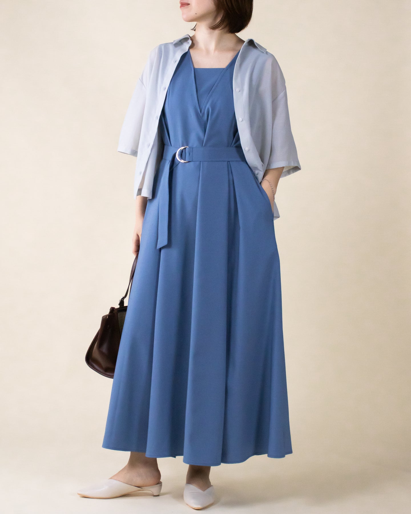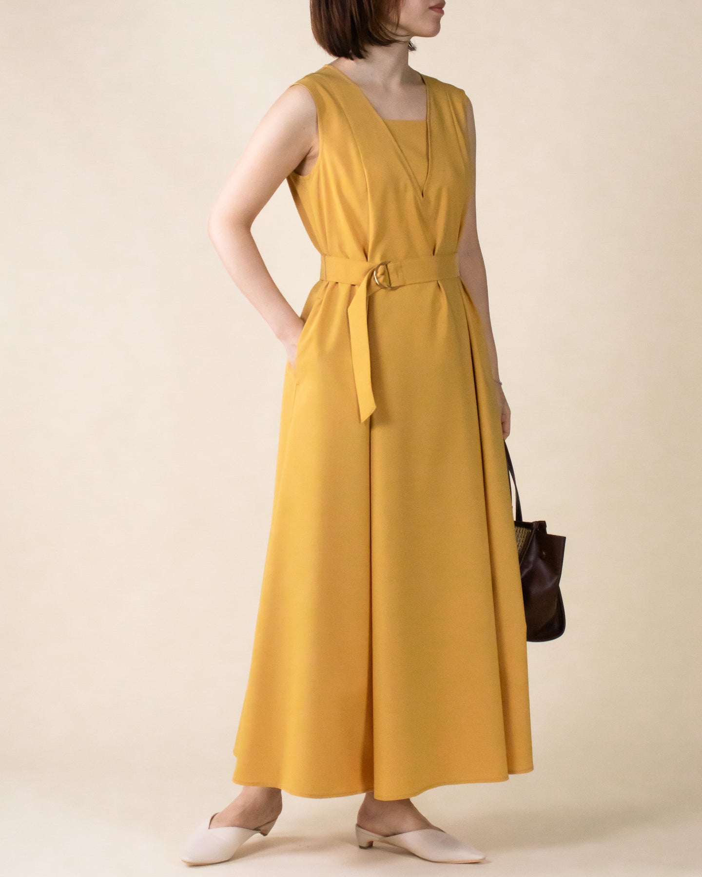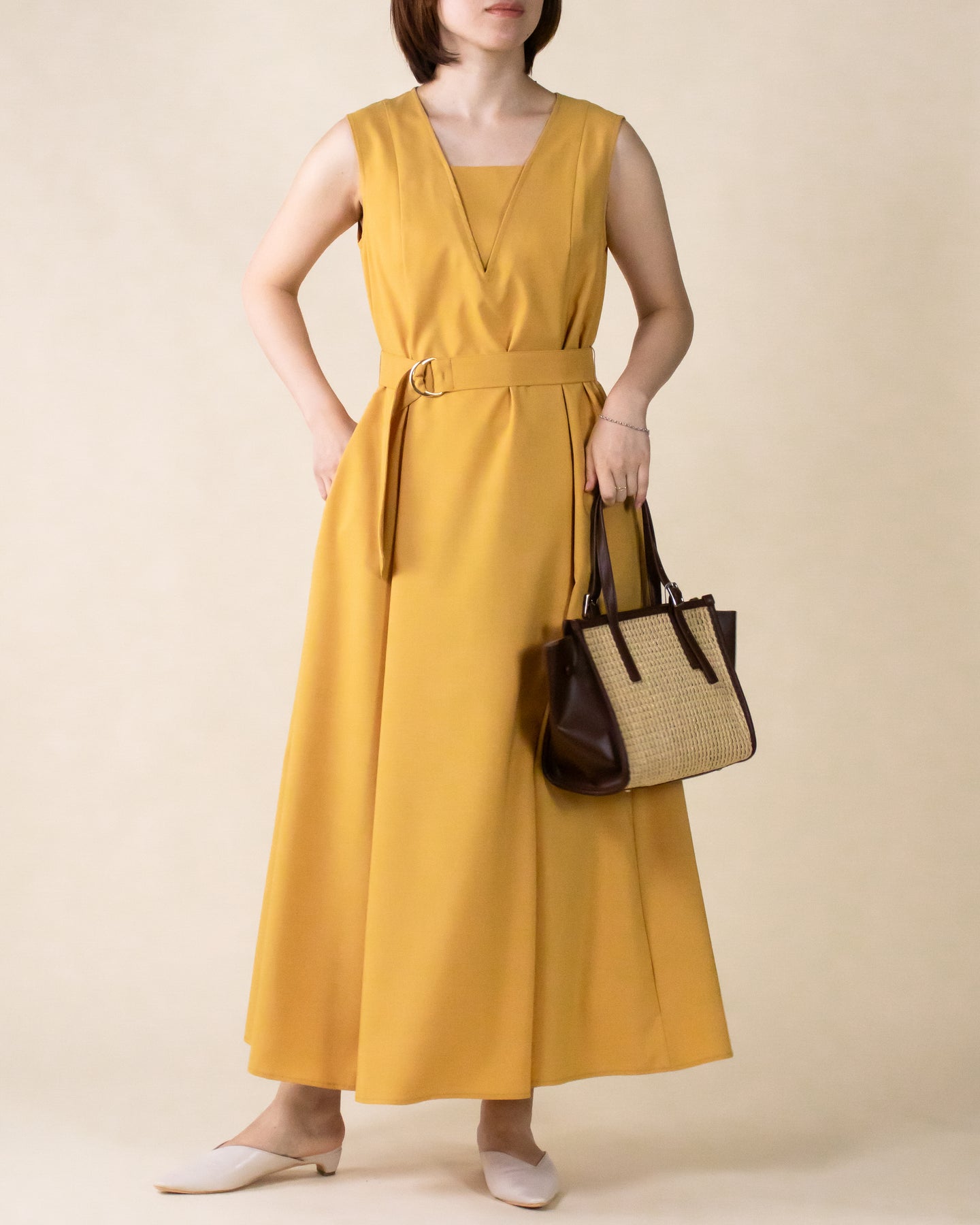 ■ポイント ・デコルテを綺麗にみせるスクエアネックのライン ・インナーを重ね着したかのような首元デザイン ・深めのVラインは顔から上半身まですっきり見え ・裾まで広がるフレアシルエット ・シワになりにくいポリエステル素材・脇ポケット付き※2023年夏の「キーネックノースリワンピース・NO13235036」と同素材