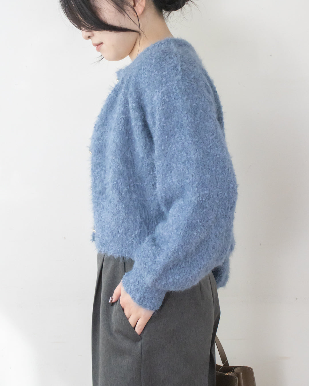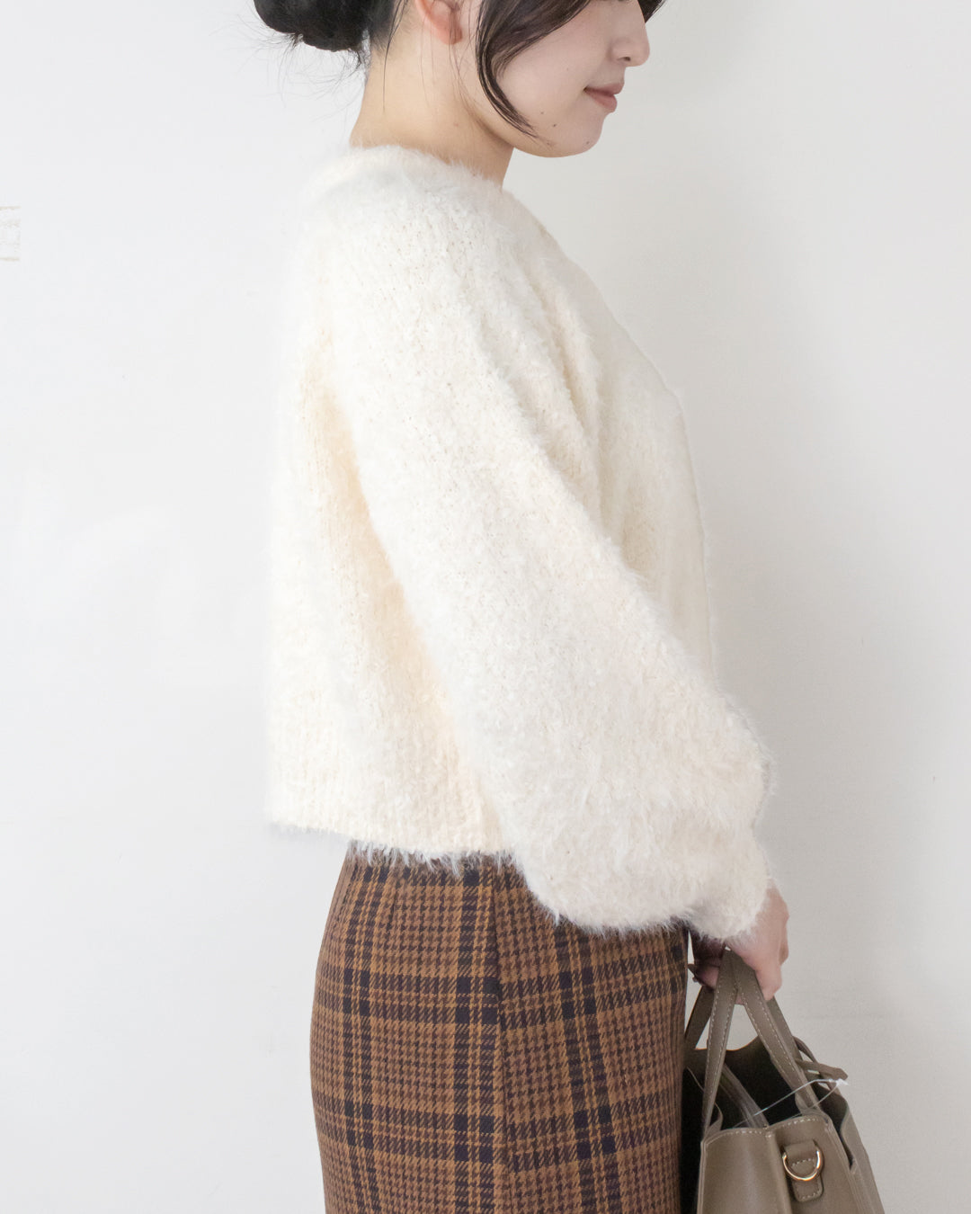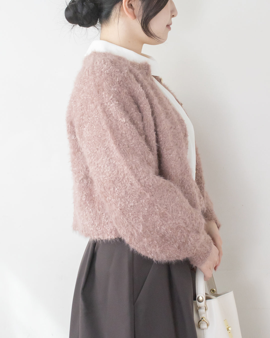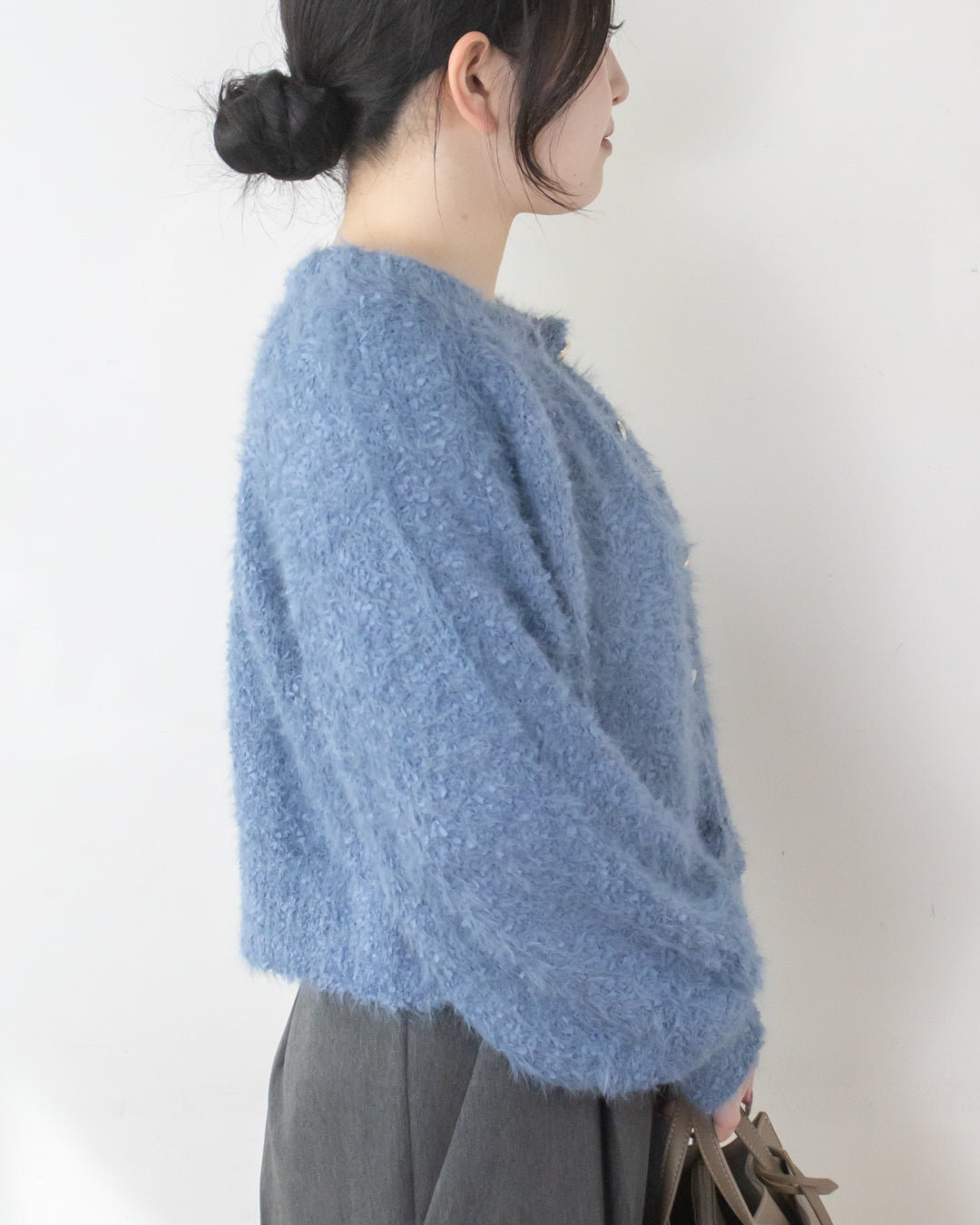 ふわふわのトレンド感を纏うリボンヤーンシャギーカーディガン