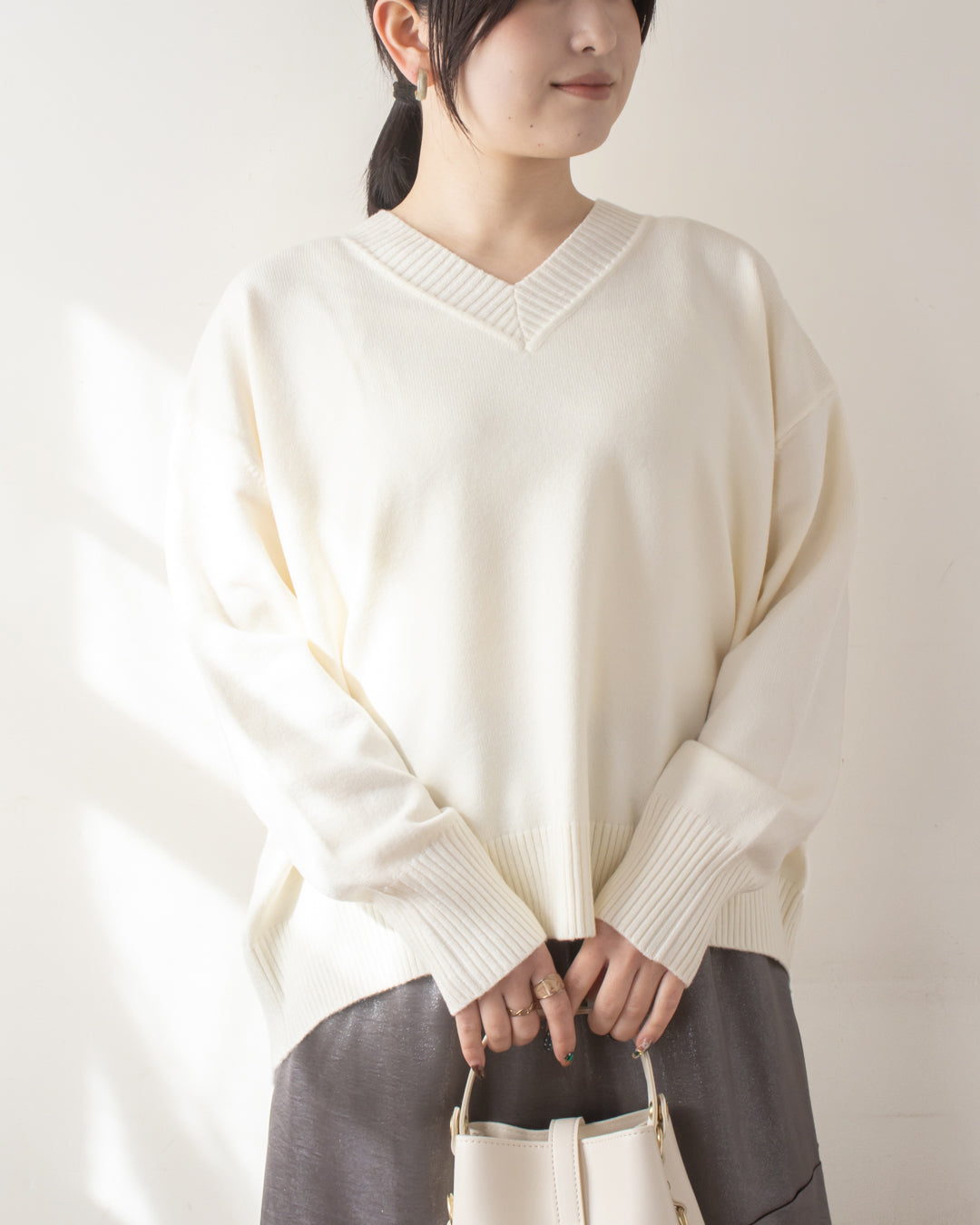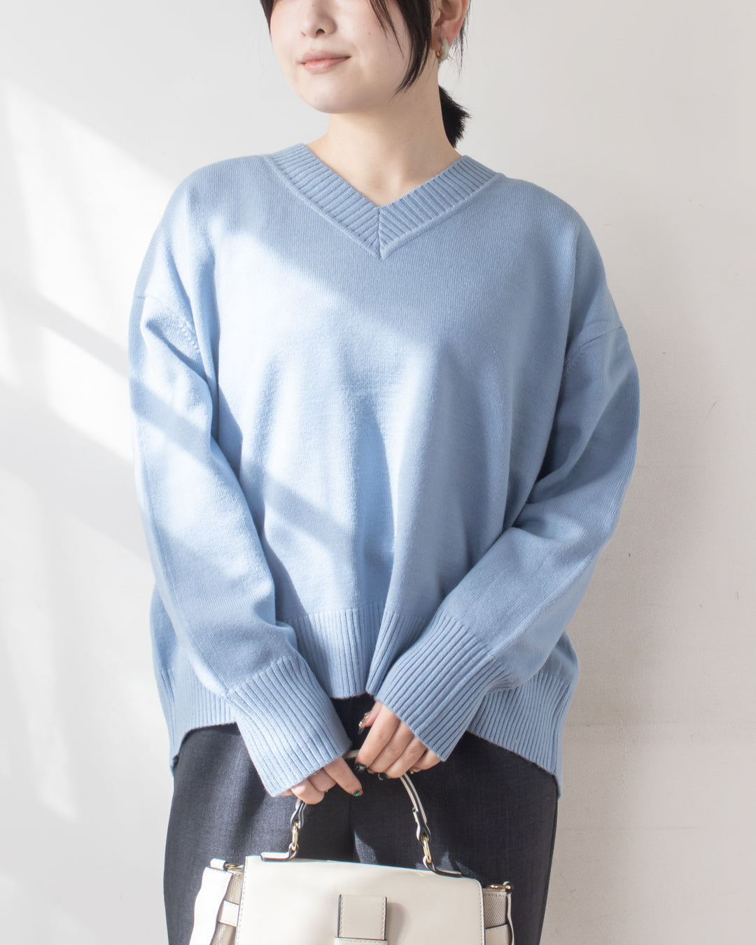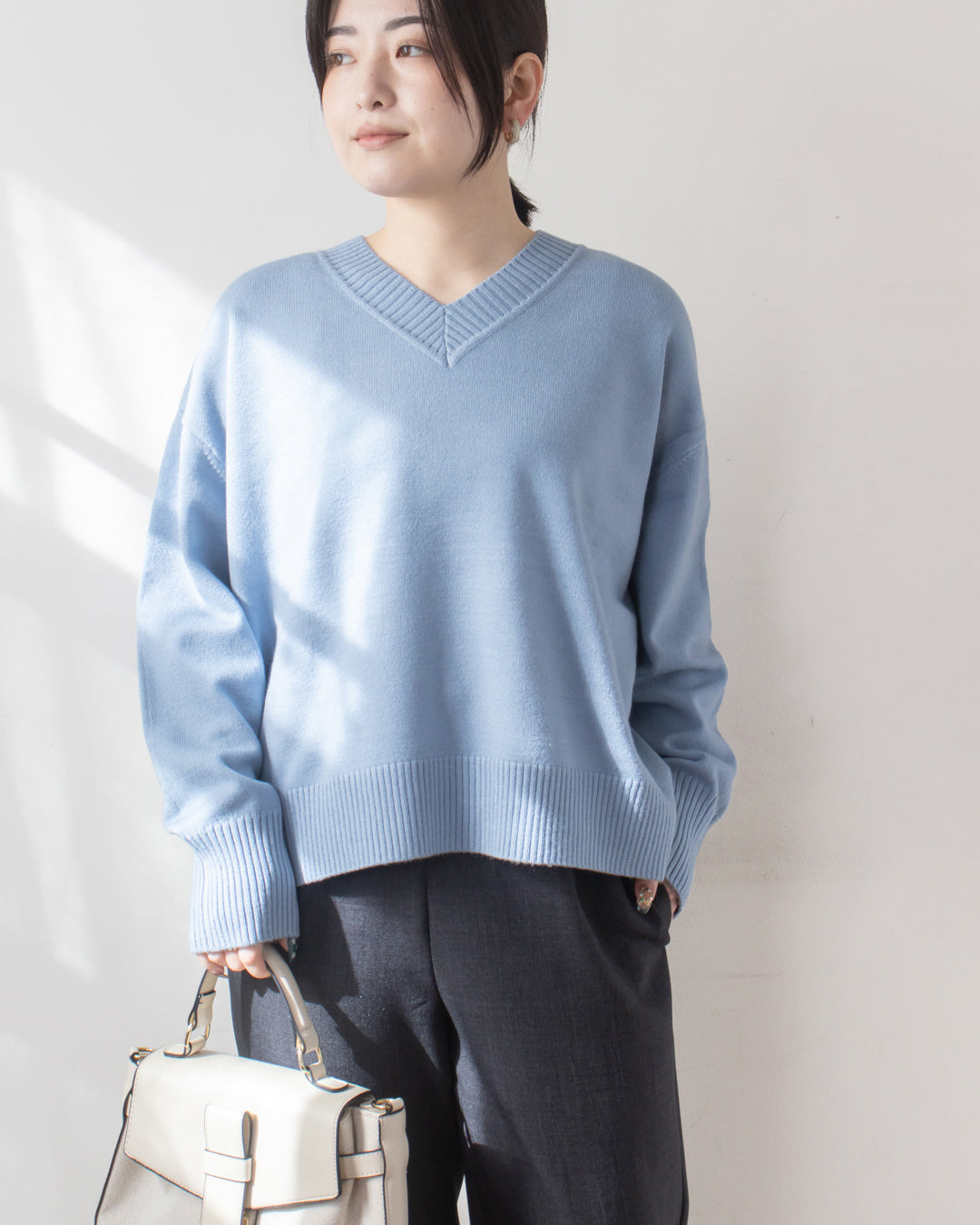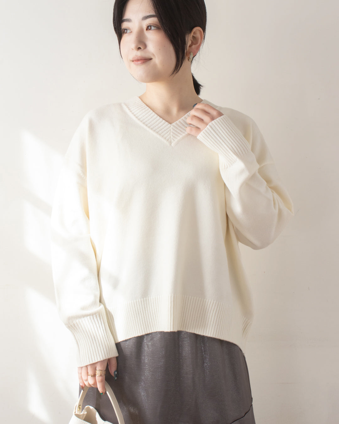 しっとり滑らかな質感でデイリーに使いたくなるVネックニットです。