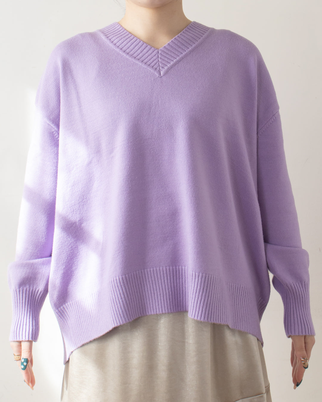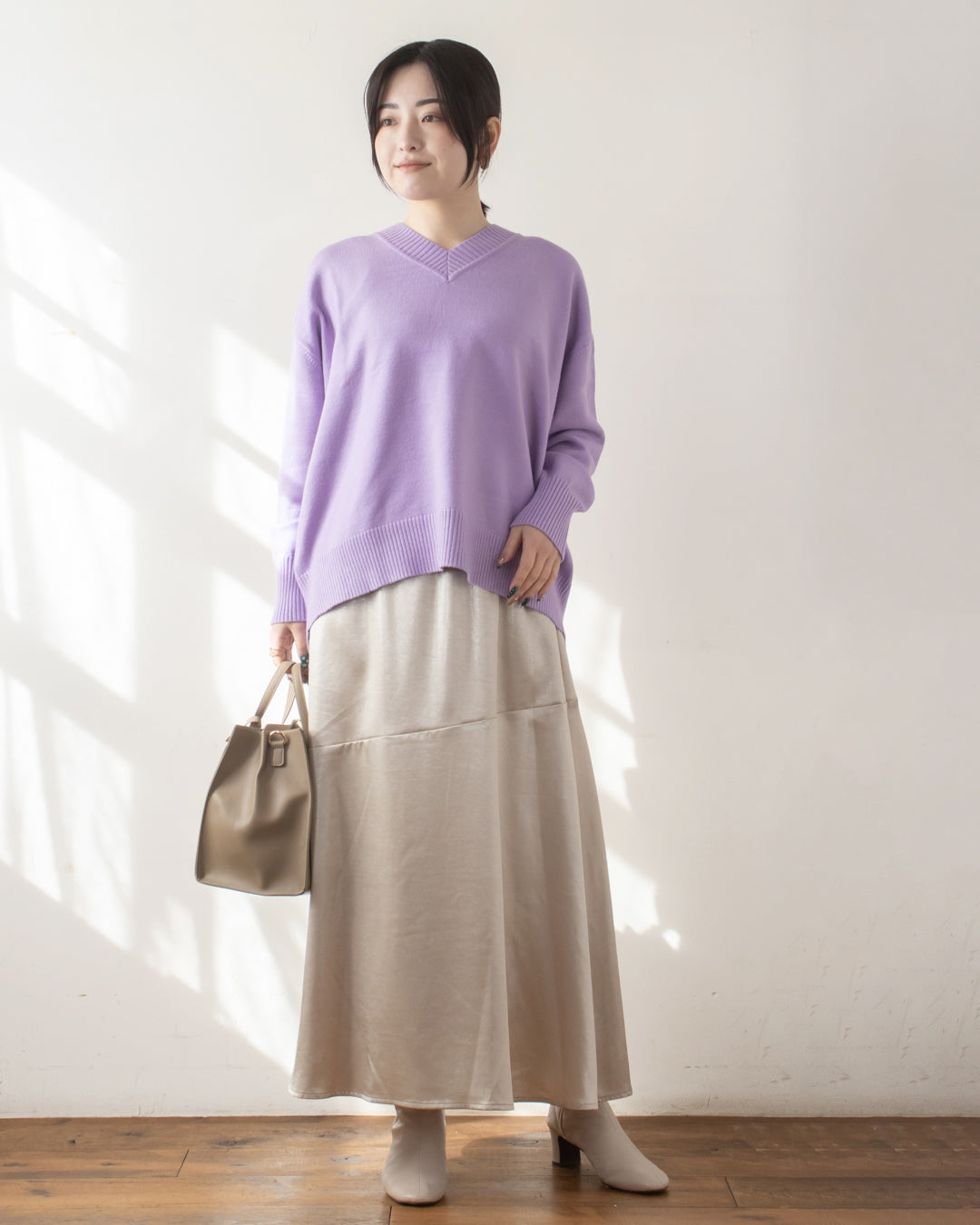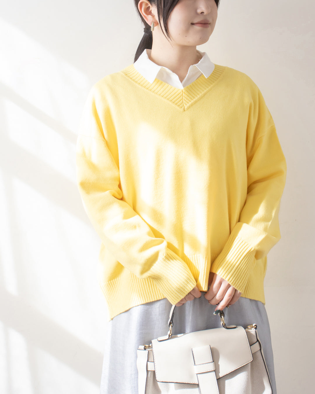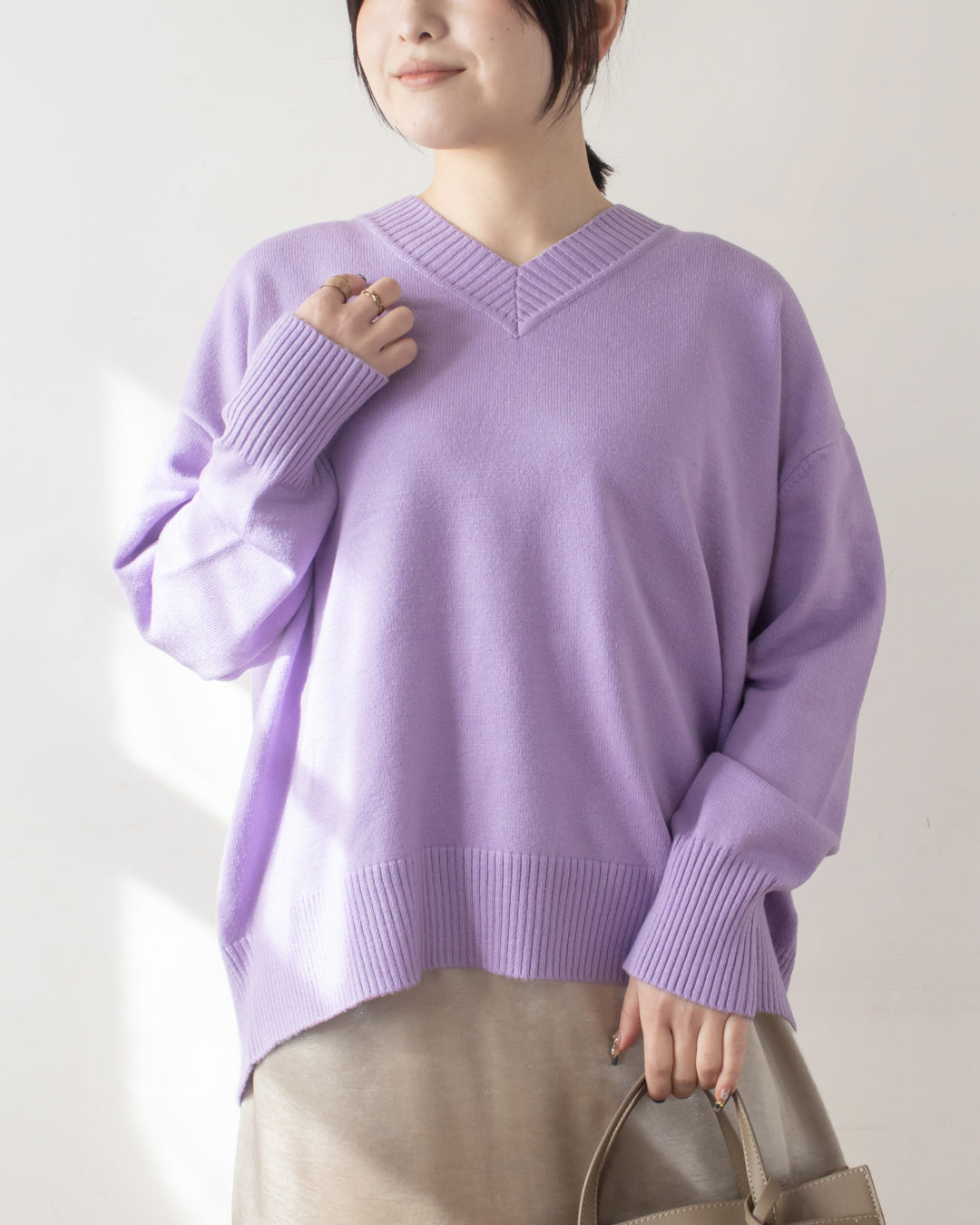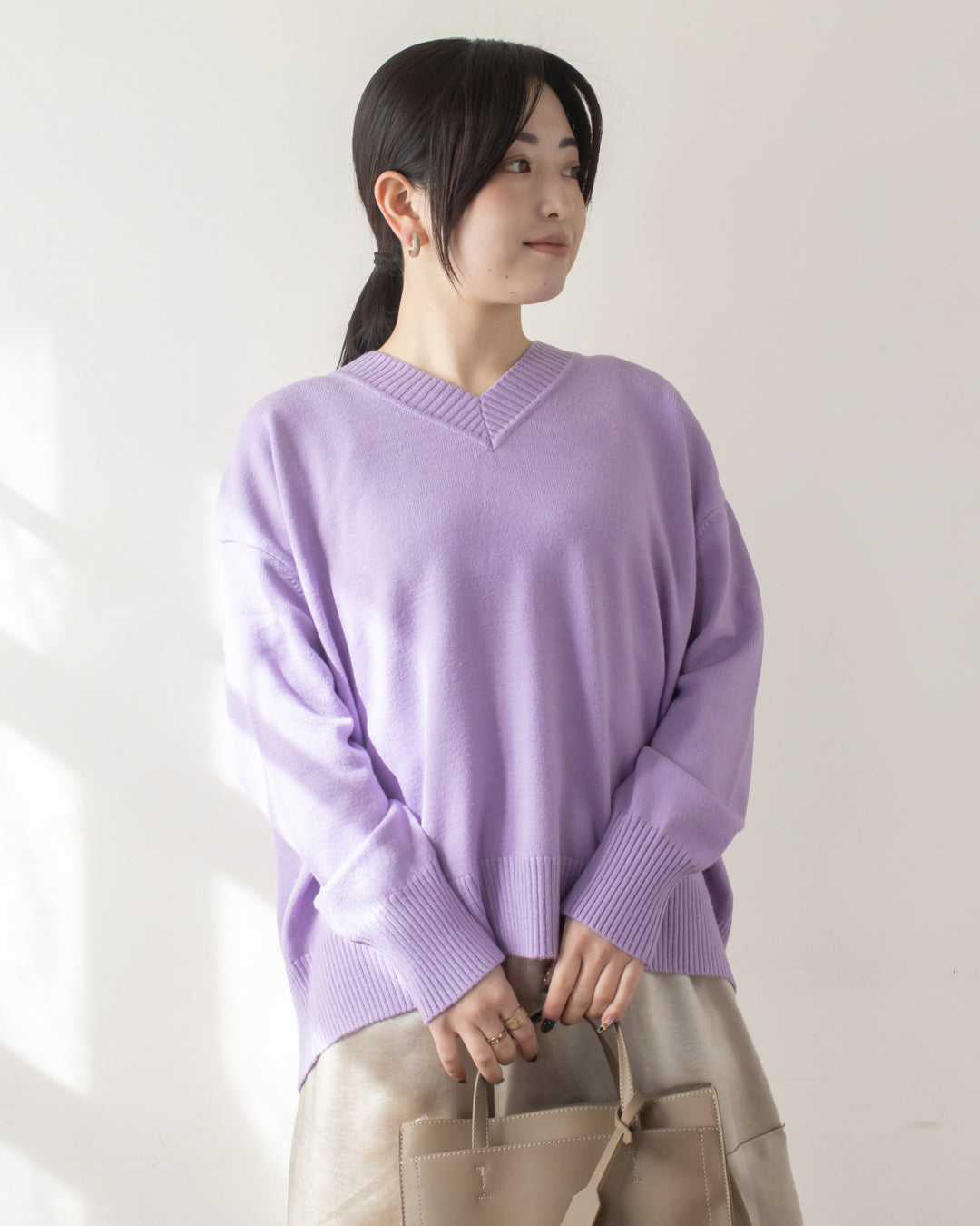 しっとり滑らかな質感でデイリーに使いたくなるVネックニットです。