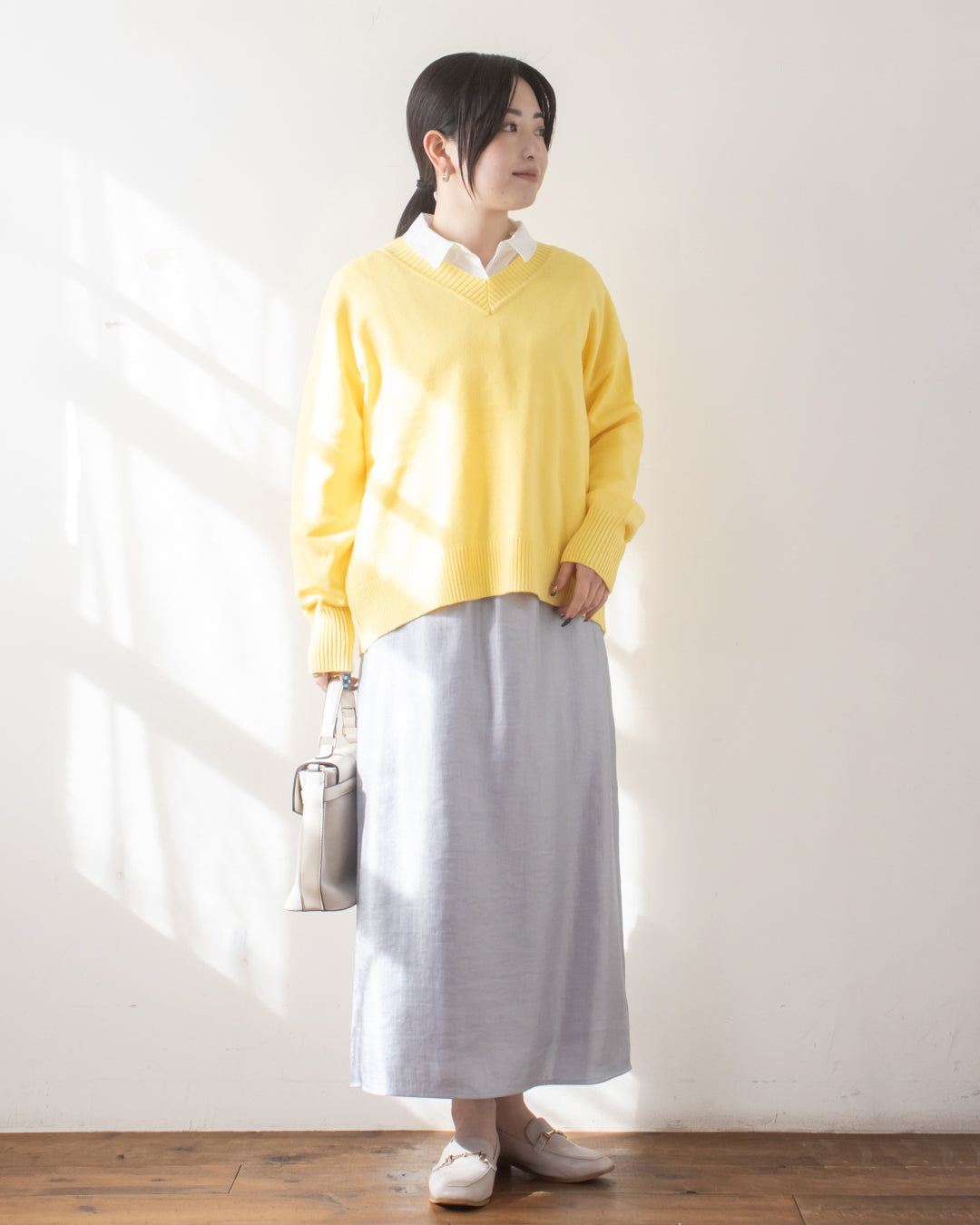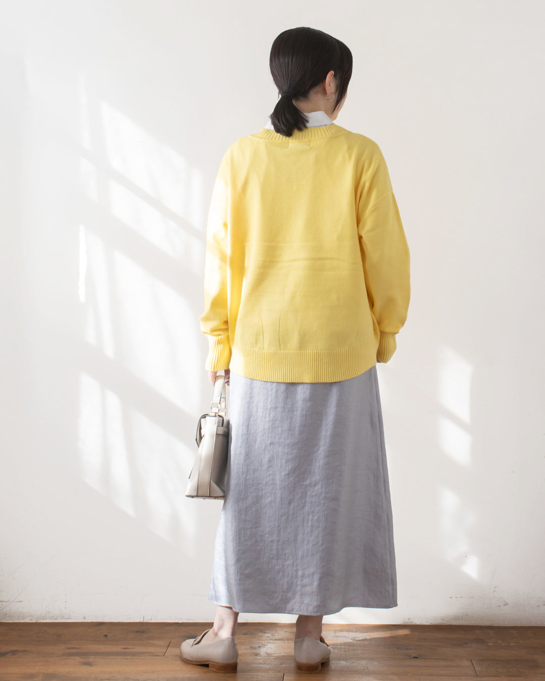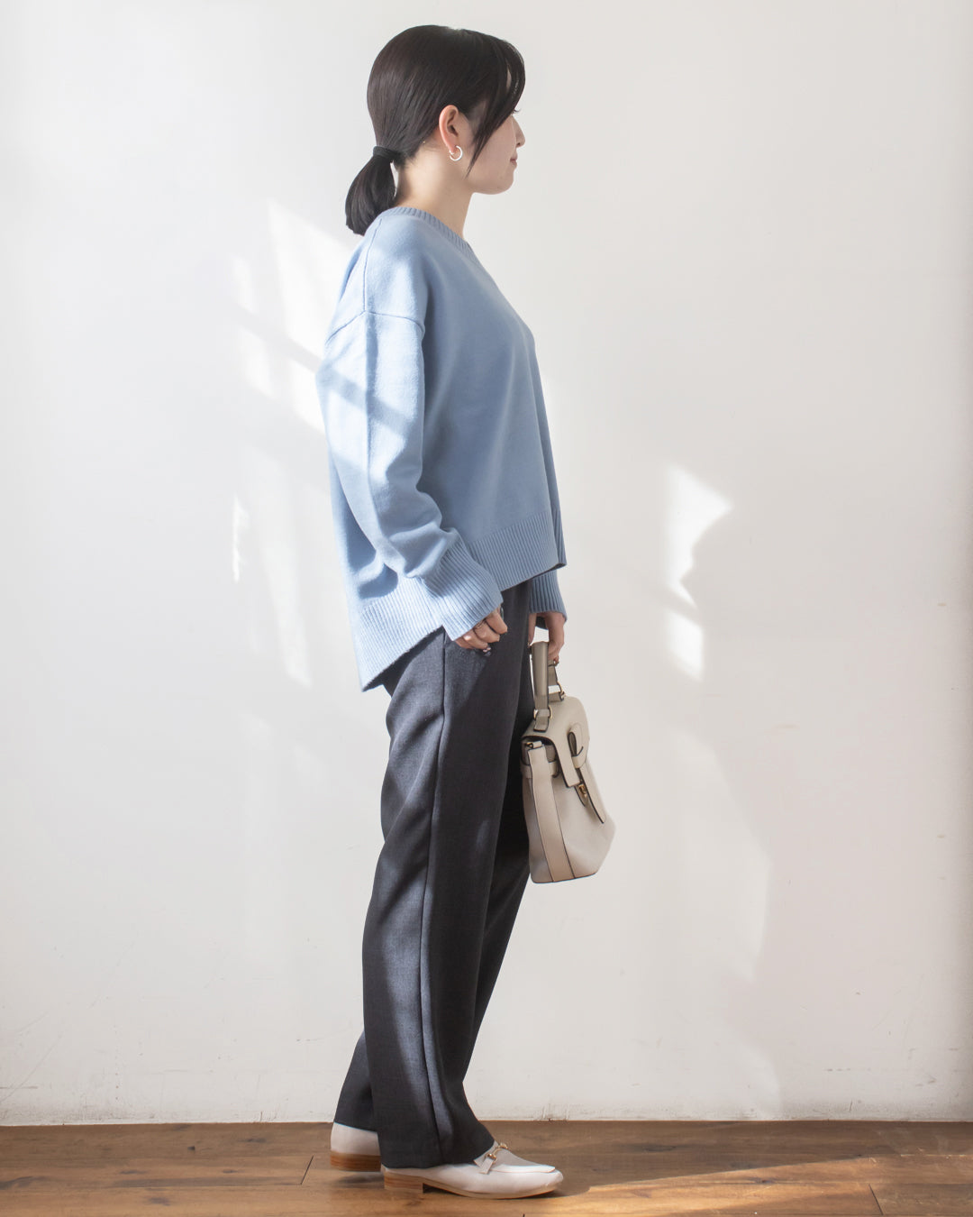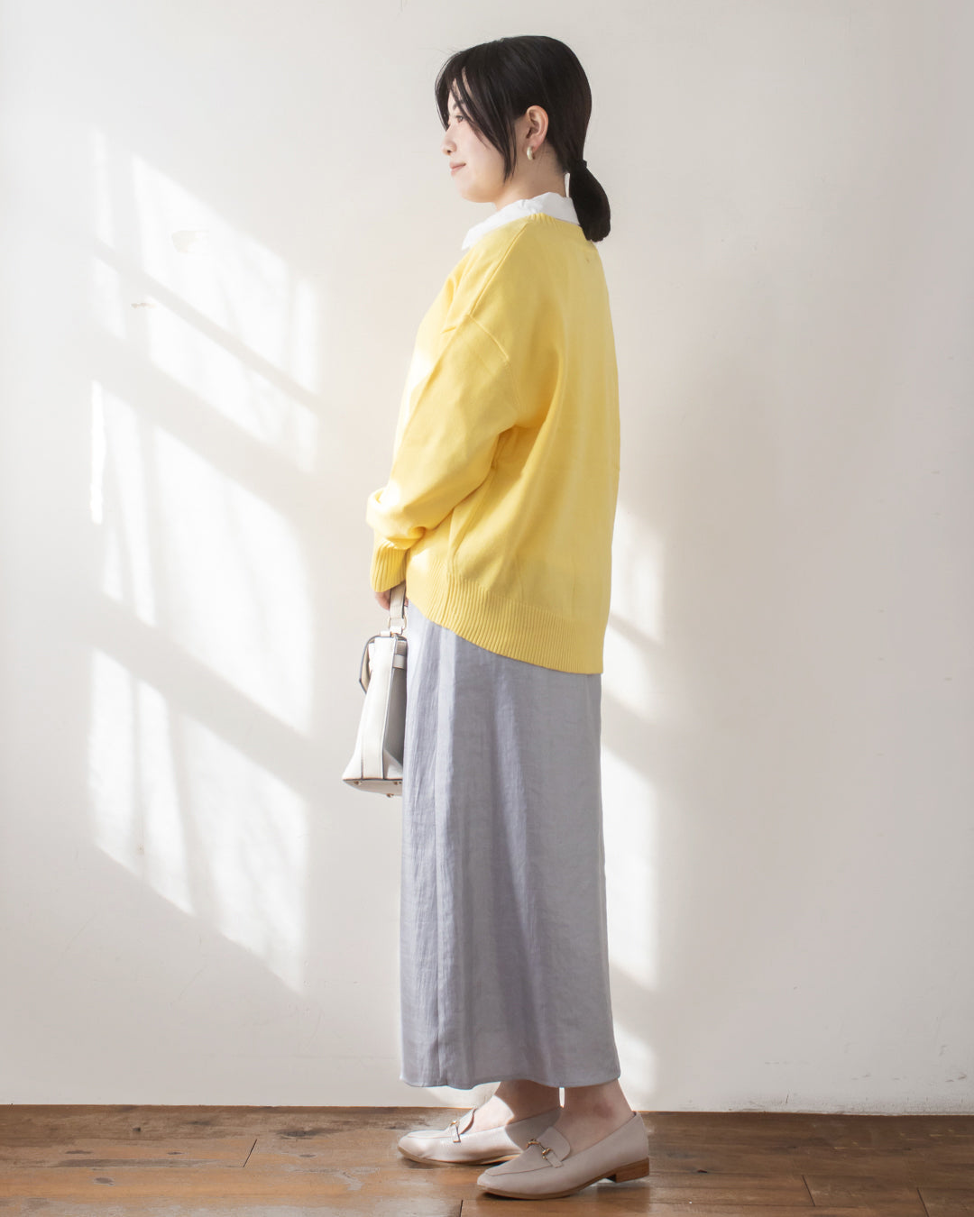 ・裾周りがゆったりしているのでボトムが選びやすく、パンツからスカートまで着こなせます。