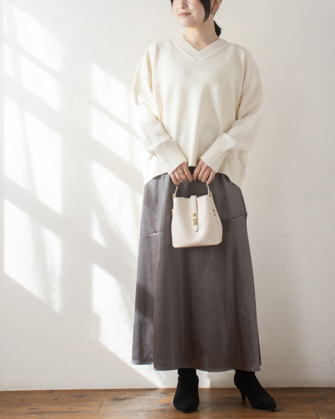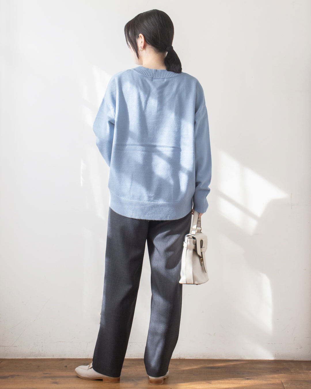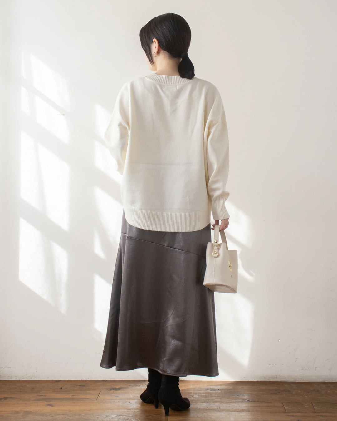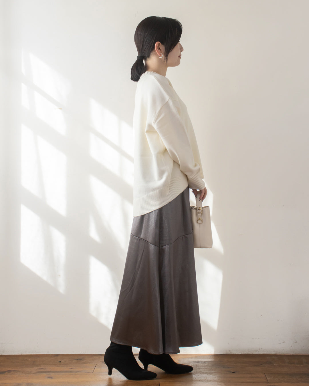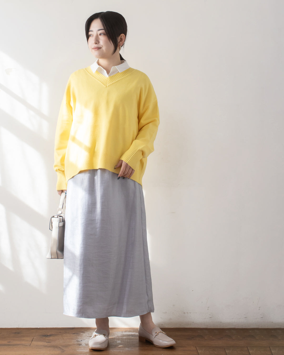 ・裾周りがゆったりしているのでボトムが選びやすく、パンツからスカートまで着こなせます。