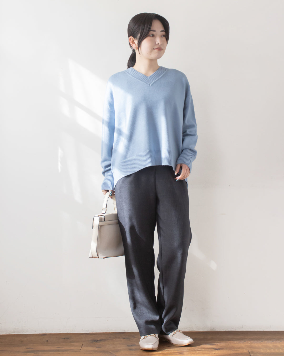 開きすぎていない程よいVネックが冬の着膨れを防いでくれます。